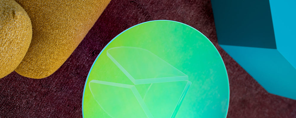 The iridescent Glas Italia Shimmer dining table by Patricia Urquiola Photo © Mindi Cooke