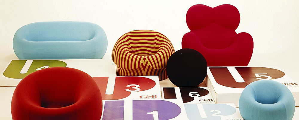 It was at the 1969 Milan Furniture Fair that the UP Series made headlines internationally. Exploring the capabilities of air-sensitive foam with Bayer, the first UP5 armchair was vacuum-packed flat and when unwrapped slowly expanded to the delight of the audience. So successful was the design that B&B Italia relaunched the now permanently expanded model in 2000, and then added the miniaturised UP Junior range in 2014.