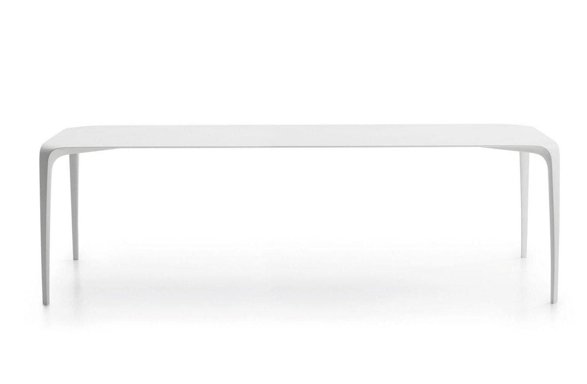 One-of-a-kind, moulded in a continuous, joint-free shape, the Link Outdoor table stands out for its pure design and soft materiality. It is made from a practical technological material: a special Cristalplant® compound with a soft-touch effect of considerable sensory impact. Suitable for indoor and outdoor use.