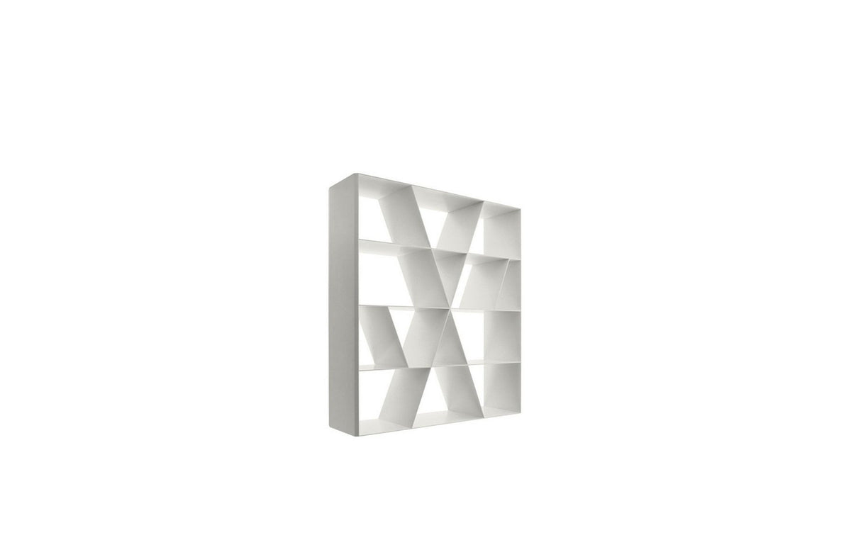 Homogeneous Corian white, thin surfaces and strong geometrical features make the bookcases Shelf exclusive items, important presences that are also almost immaterial. Available in four sizes, of which one is designed for wall mounting.