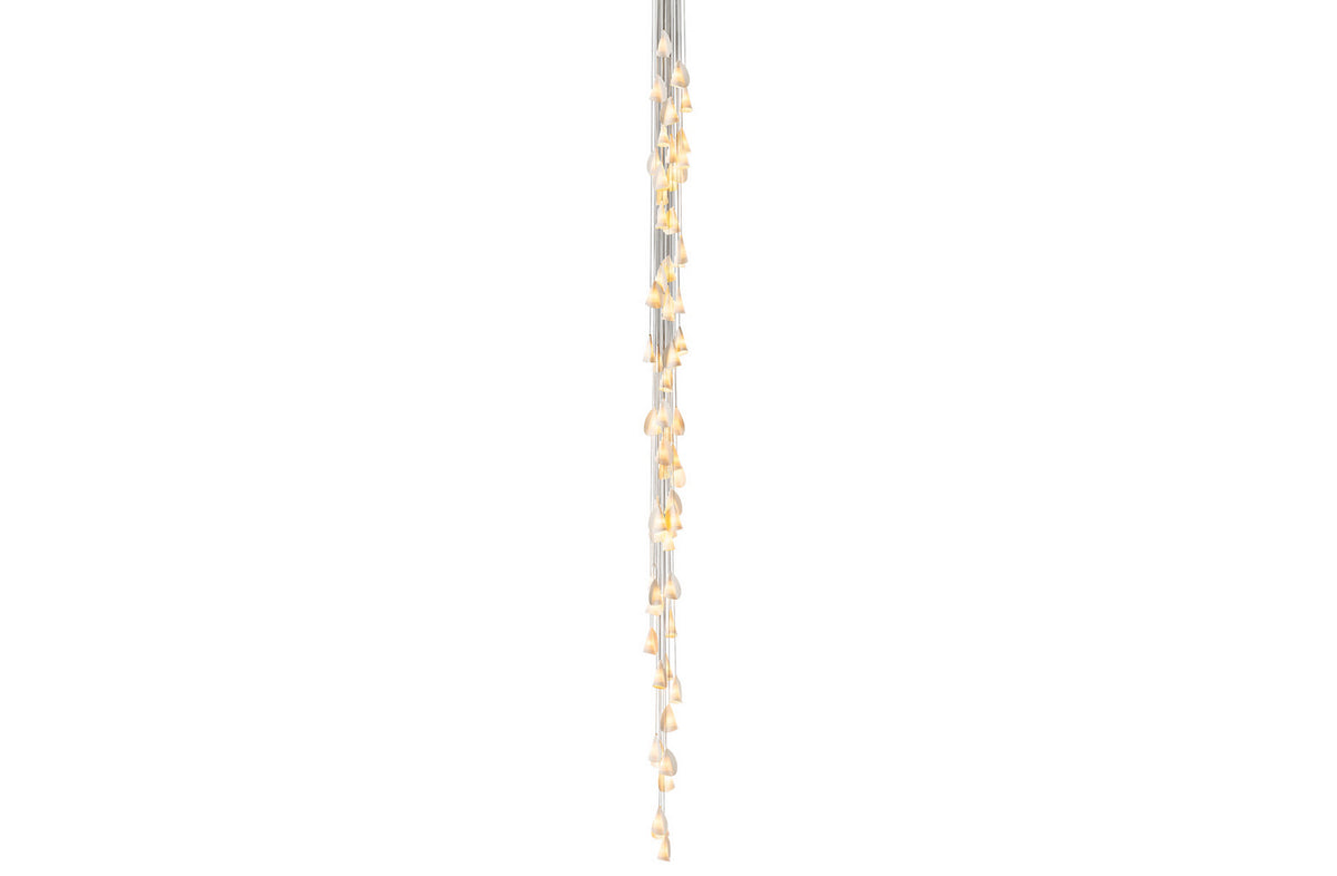 21.61 is composed of 61 raw-porcelain pendants, each hanging at a different height and attached to a single cluster canopy.