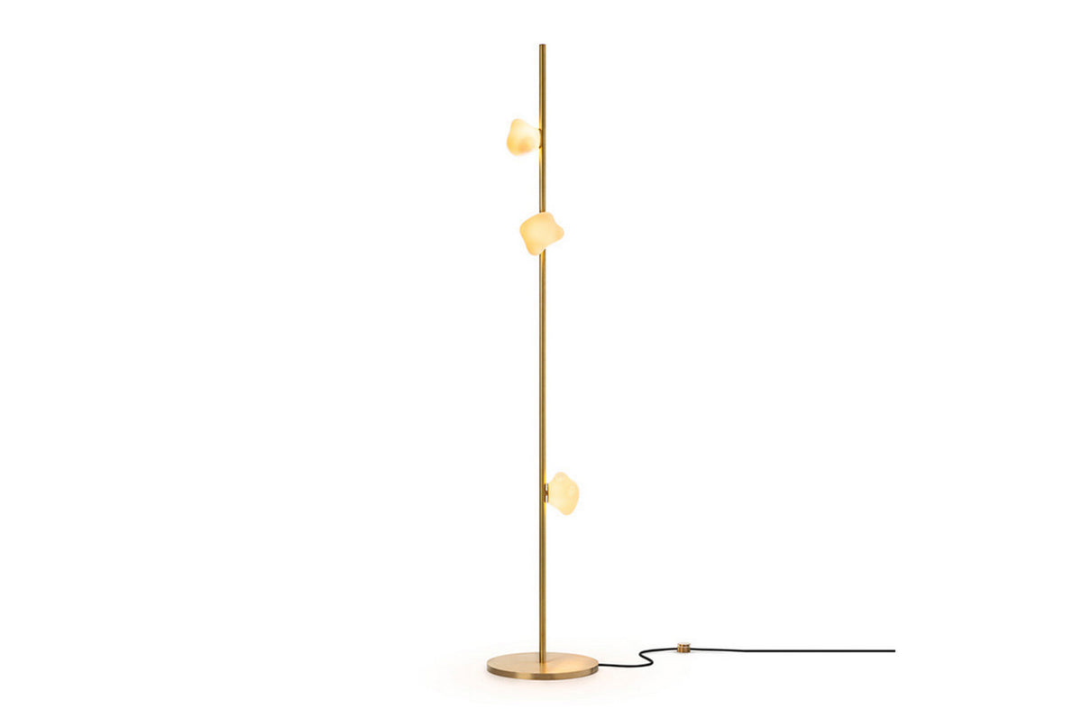 The 57.3 floor comes in a black powder coated or brass finish with a 350mm (13.8”) diameter base. The semi-rigid black fabric cord includes a patented integral 360 degree dimming system housed within a sleek brass cylinder.
