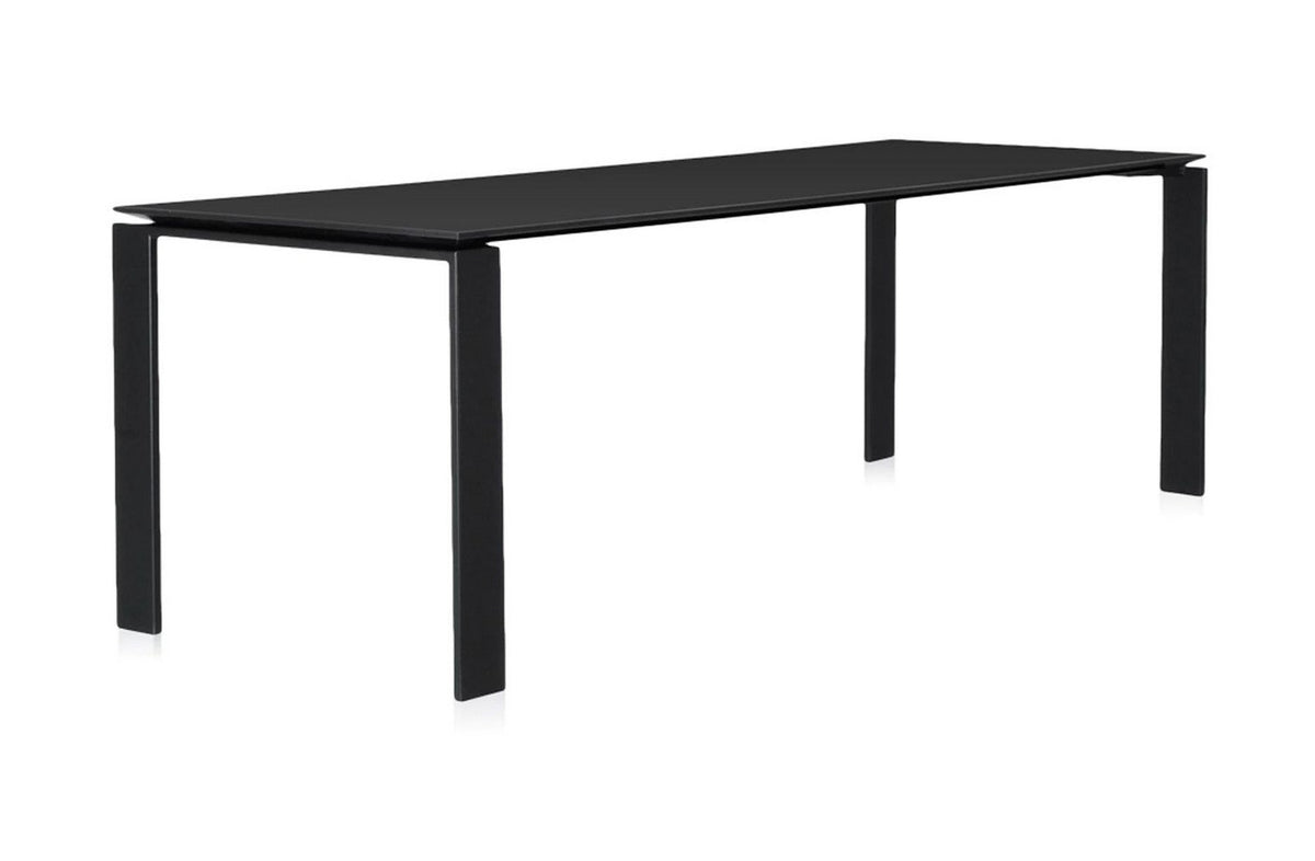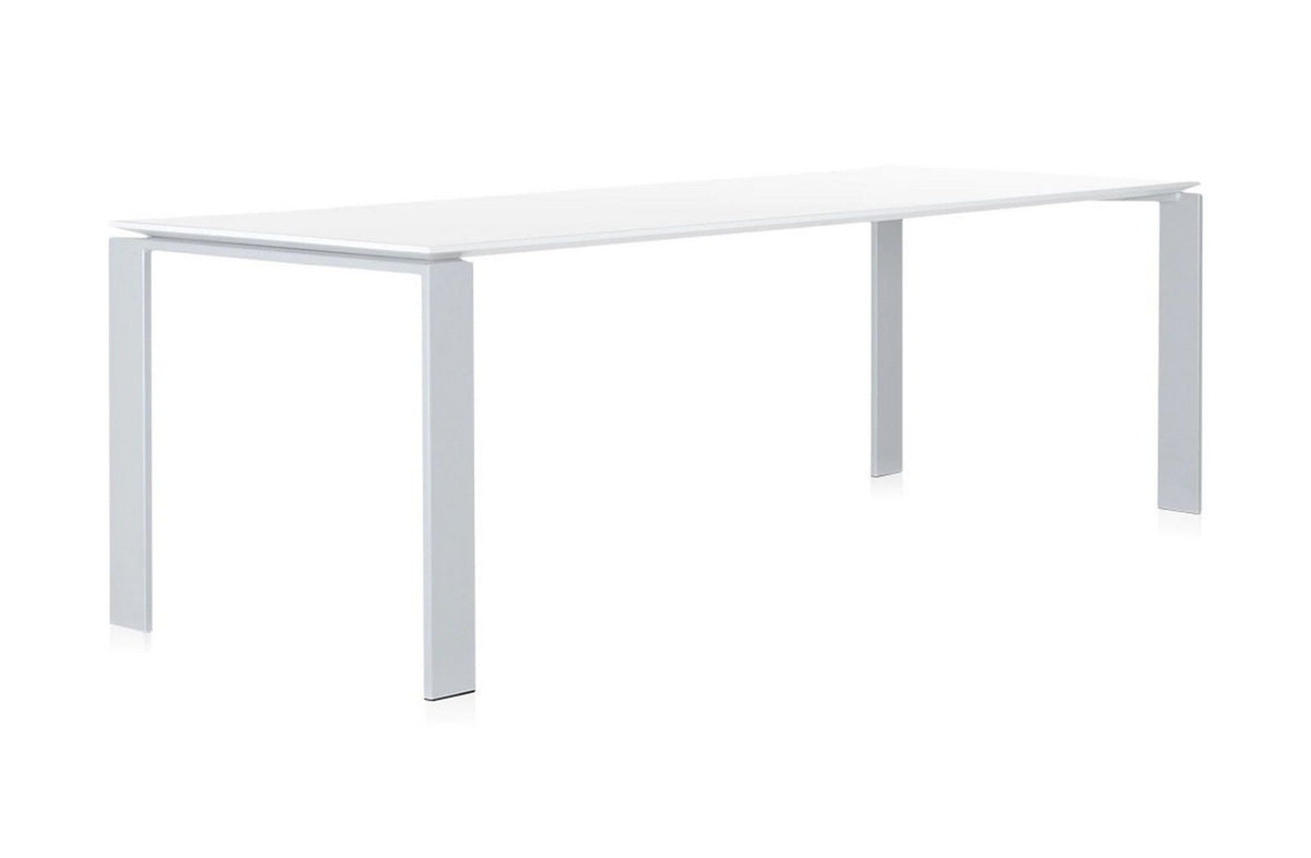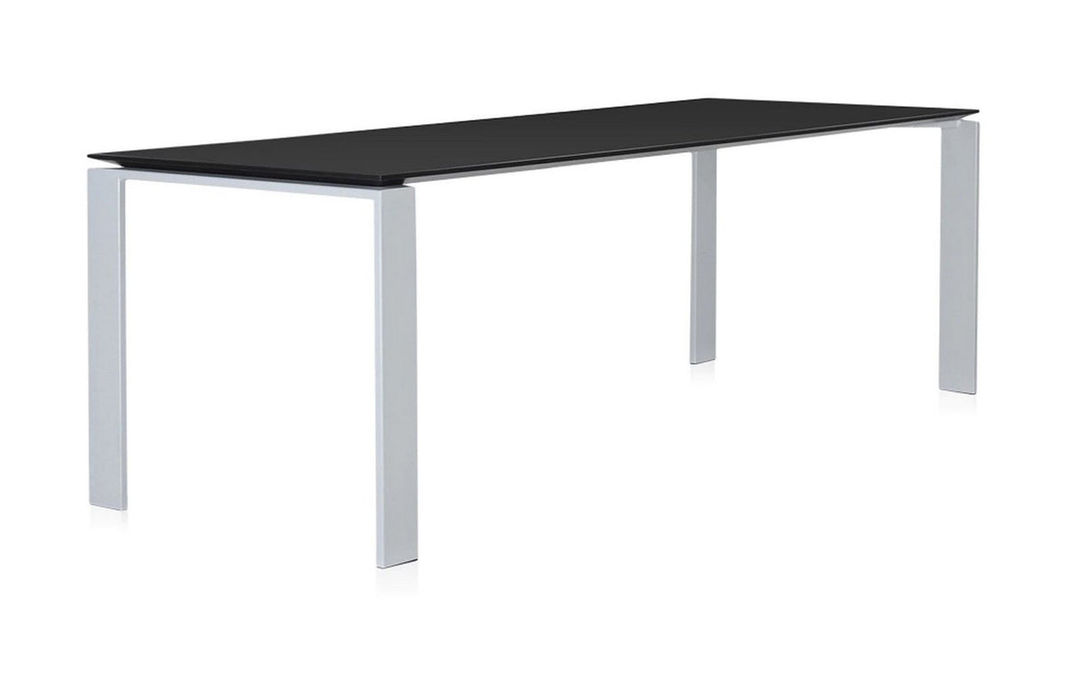 This functional and refined table also has a strict geometric design. Thanks to the elegant design solution, the position of the slim table top allows for the convenient positioning of drawers or storage furnishings for computer hardware. They can be placed side-by-side to form office workstations.