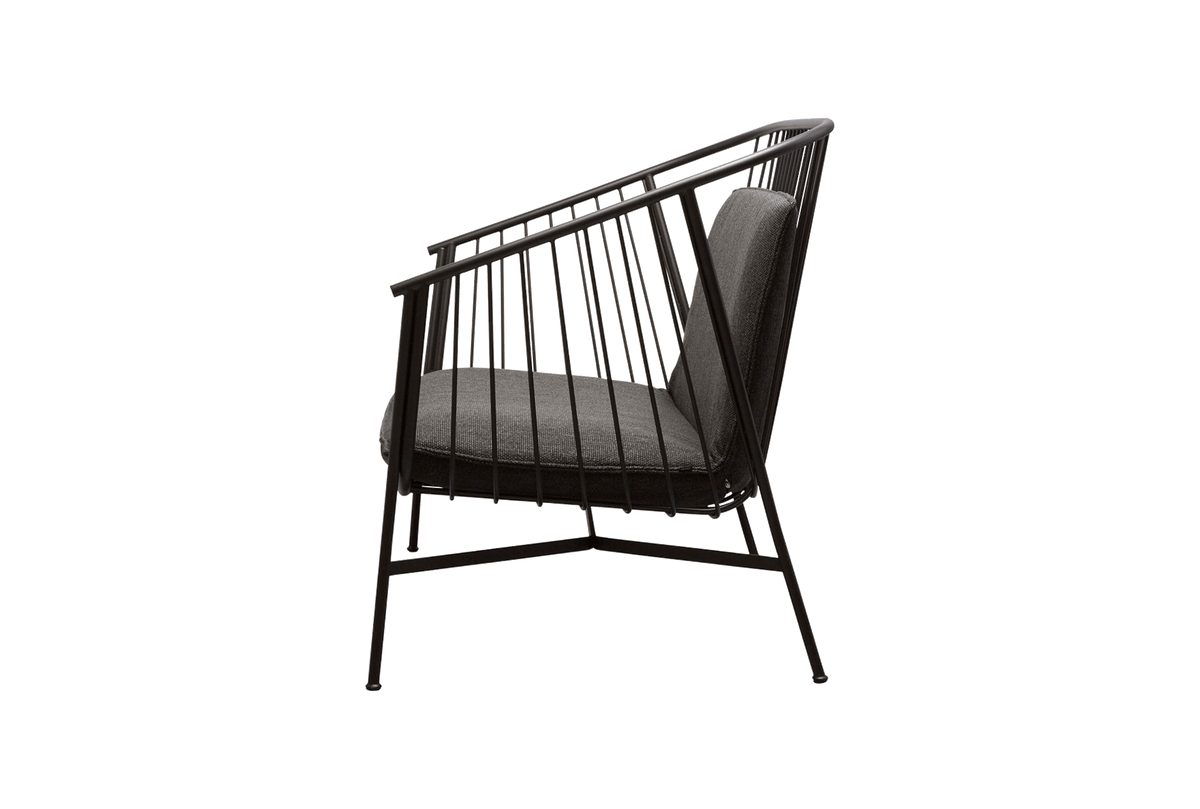 A compact lounge chair which continues the low-line comfort of the Jeanette series. This petite lounge chair is perfectly sized for the balcony or bar. Dress her up with a soft upholstered cushion available in outdoor or indoor fabrics or leather.