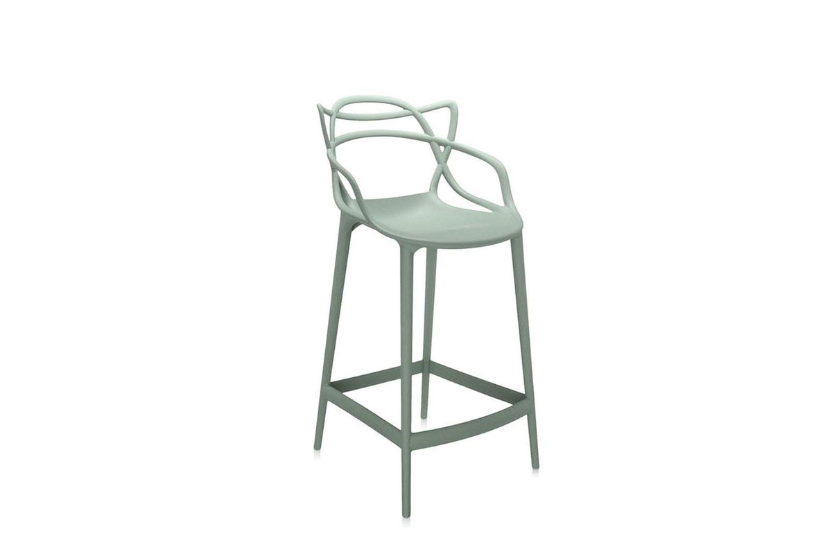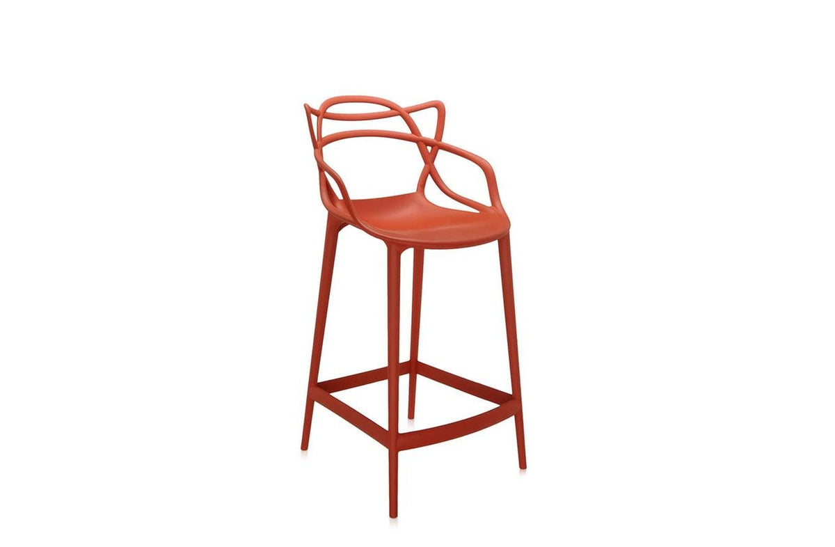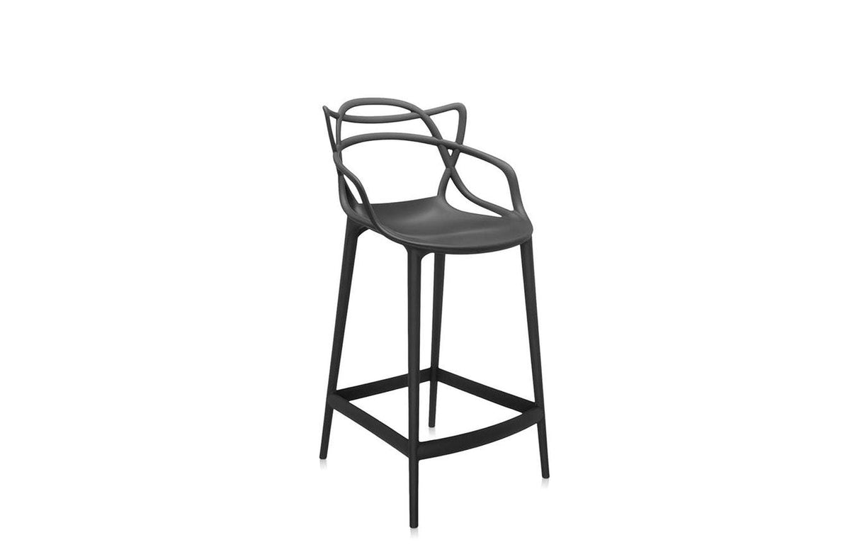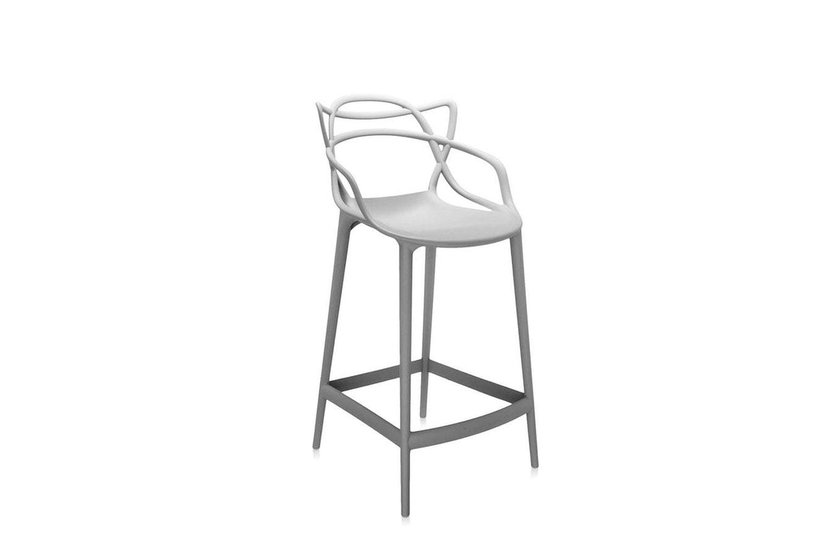 In the stool version of the Masters chair, the legs lengthen and the seat becomes more compact, but the unmistakable graphic style of the structure, created by interweaving the silhouettes of three iconic chairs, remains the same. Ideal for both domestic and contract use, the Masters Stool also lives perfectly outdoors.