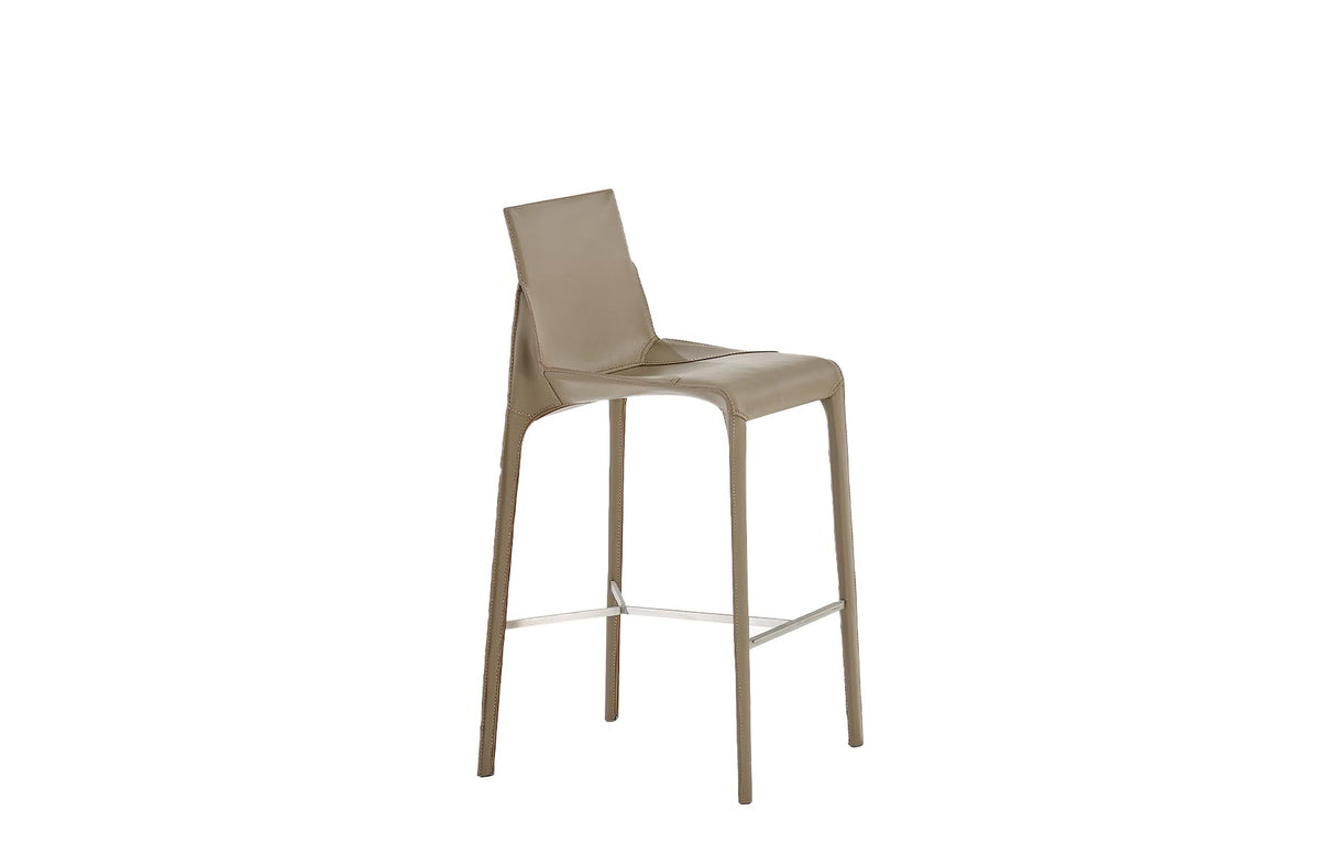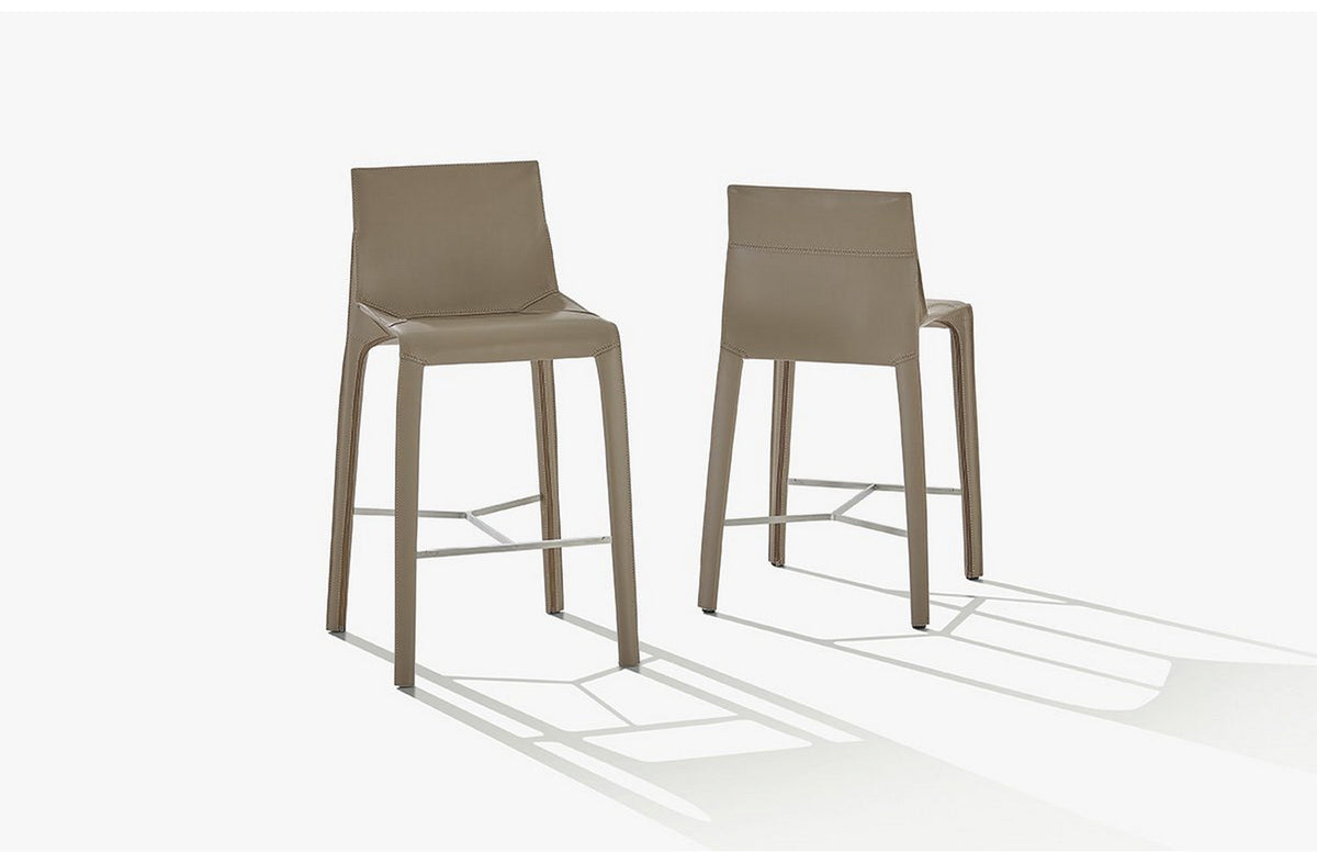The Seattle chair collection, designed by Jean-Marie Massaud in 2015, is completed by the stool, with even more elegant proportions. Like the chairs, the stool too is distinguished by the quality of the hide covering manufacturing, with stitching and punching inspired by the British shoemaking tradition.