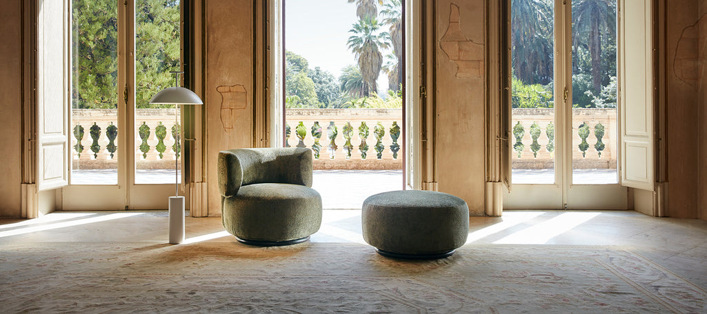 Delve into the soft elegance of Space Furniture's collection of Italian-crafted round ottomans, renowned for their ability to infuse spaces with a fluid, organic aesthetic. Each piece stands out in luxury furniture, blending impeccable form with practical functionality. Crafted with precision and attention to detail, our round ottomans aren't merely pieces of furniture; they represent the pinnacle of artisan craftsmanship and a dedication to design excellence. Their inviting circular design makes them ideal centrepieces, while their plush comfort makes them perfect spots for relaxation and social gatherings.