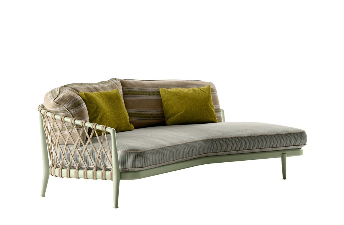The Erica ’25 series of outdoor sofas stands out for its lightness and refined design that make it ideal for both public and residential settings, delivering ergonomic comfort together with strength for outdoor use. The proposal comprises linear sofas in different sizes and depths, sofas featuring a slightly curved design ideal for creating dynamic and convivial solutions for outdoor relaxation, a dormeuse also characterized by a curved design, a day bed with particularly generous proportions equipped with a high back and integrated headrest.