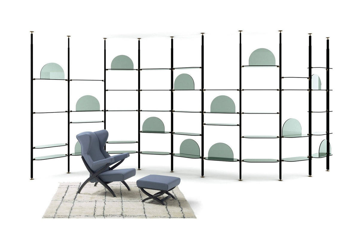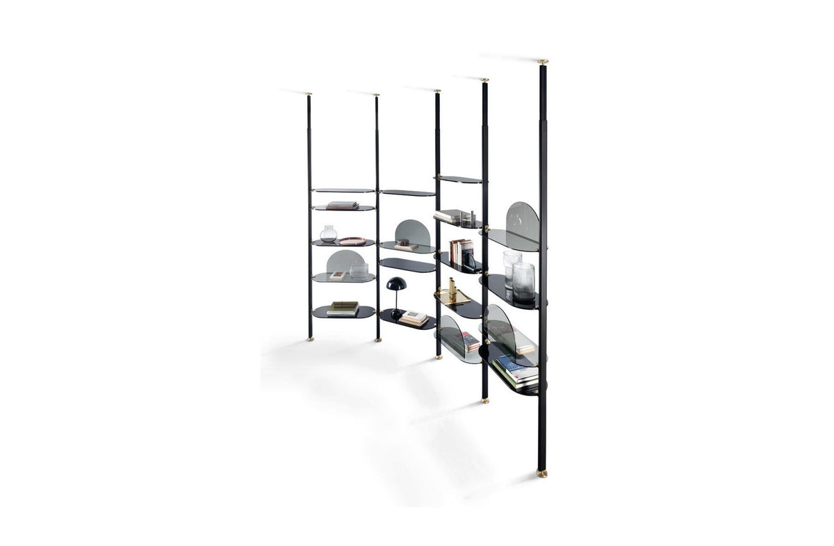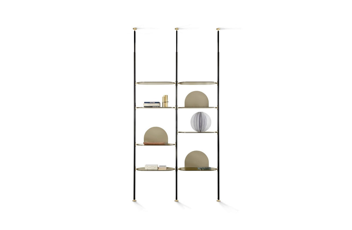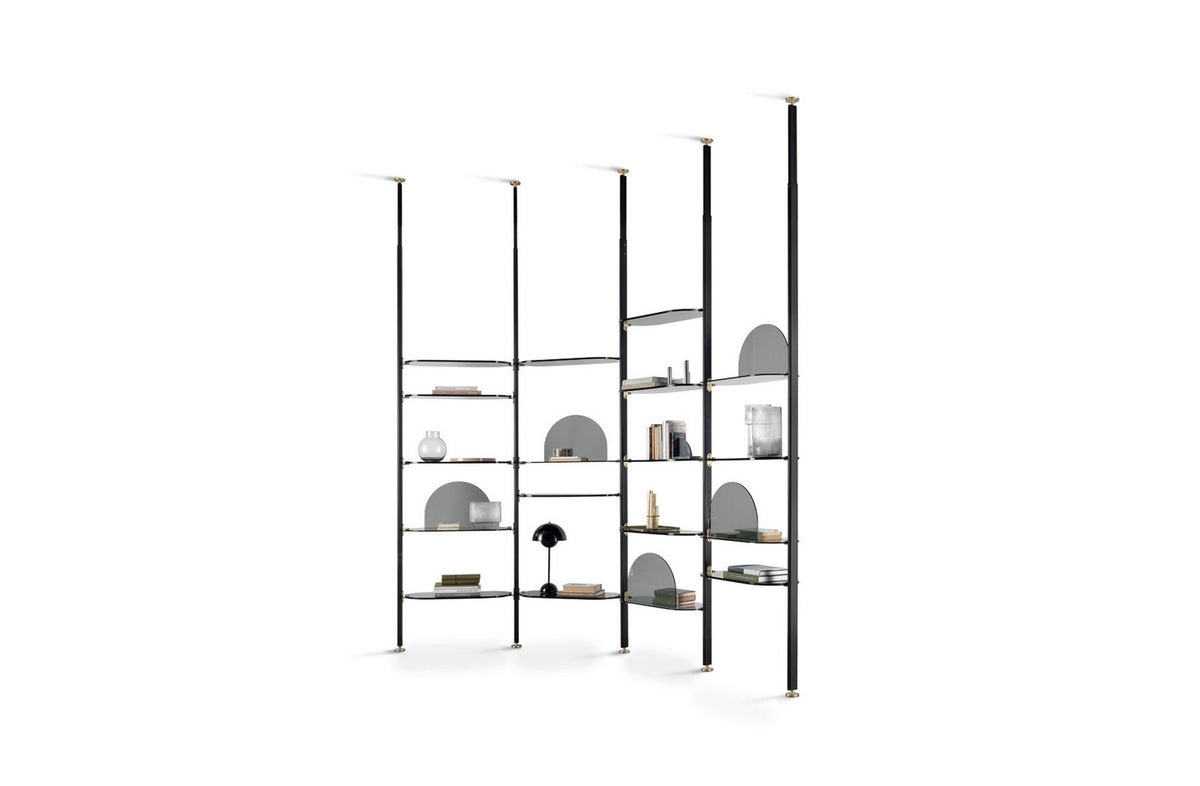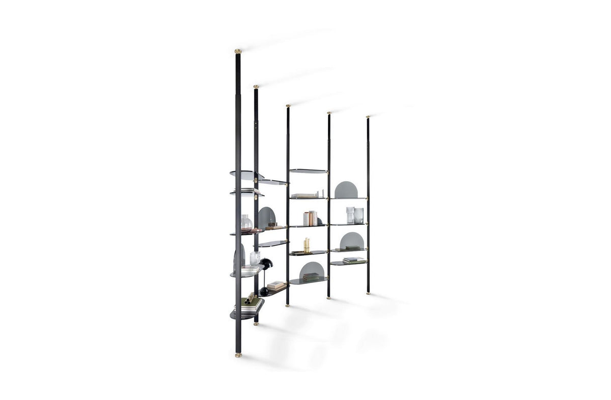 Alba is a bookcase for displaying and containing, with exceptional compositional versatility. The shelves, thanks to the fixing elements with a single pin, allow to create round compositions.