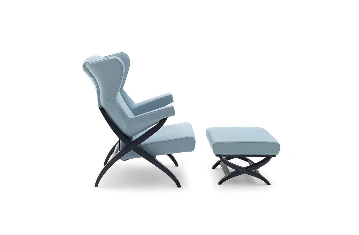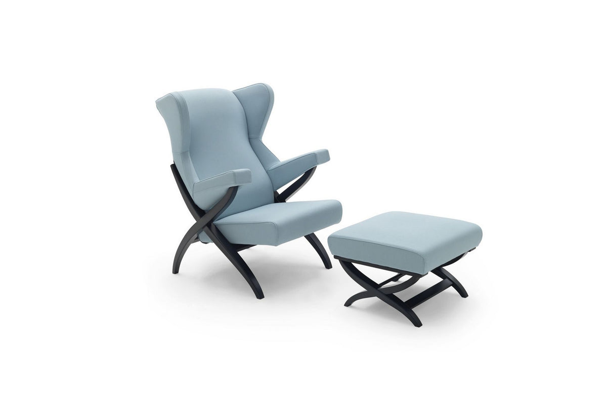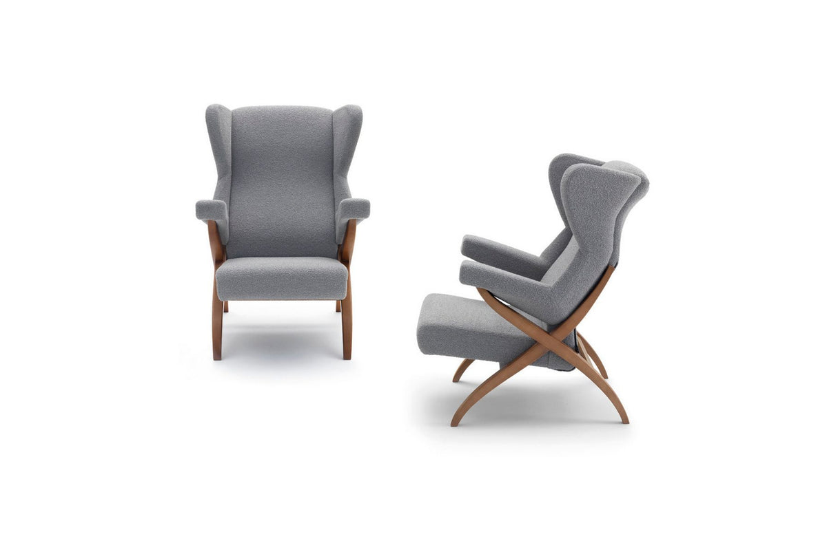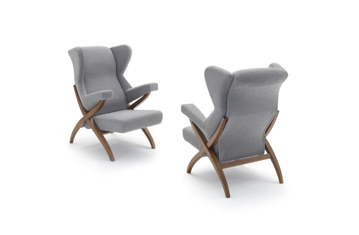 Symbol of comfort, Fiorenza armchair appears in Pirelli's 1950s advertisement as symbol of the foam rubber potential, considered at that time the most technologically advanced material used in upholstered furniture.