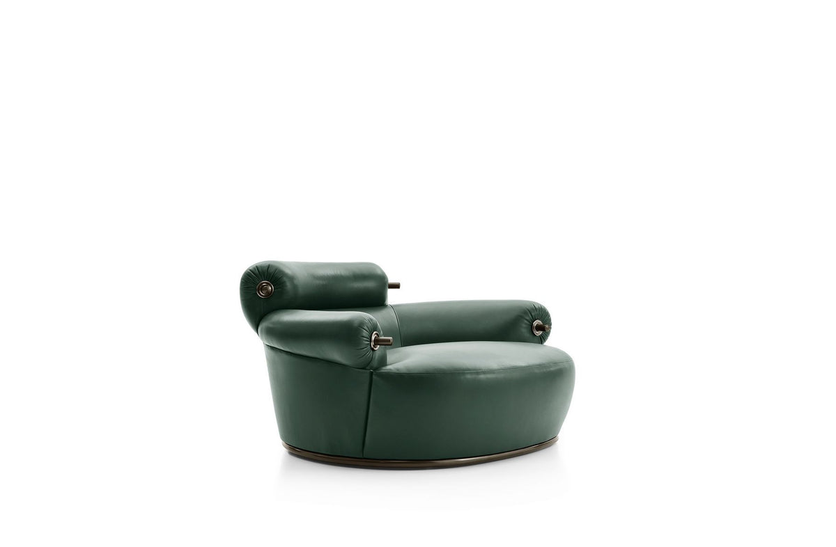 Designed for the Monticello country club on the outskirts of Milan, the Toro sofa and armchair can be admired from every angle and confidently take up centre stage.