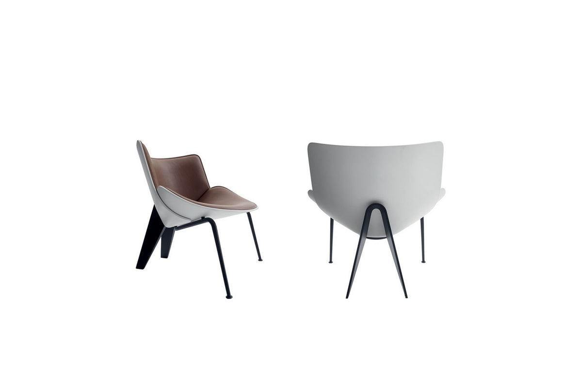 The small armchair Do-Maru is named after the ancient armour worn by samurai warriors, made up of painted and decorated thick leather plates that covered and protected the hero’s body. Like the swivel armchair Almora, designed by Doshi-Levien in 2014, once again the shell of the seat is made up of a couple of superimposed bodies, softened by paddings that can be upholstered with either fabric or leather.
