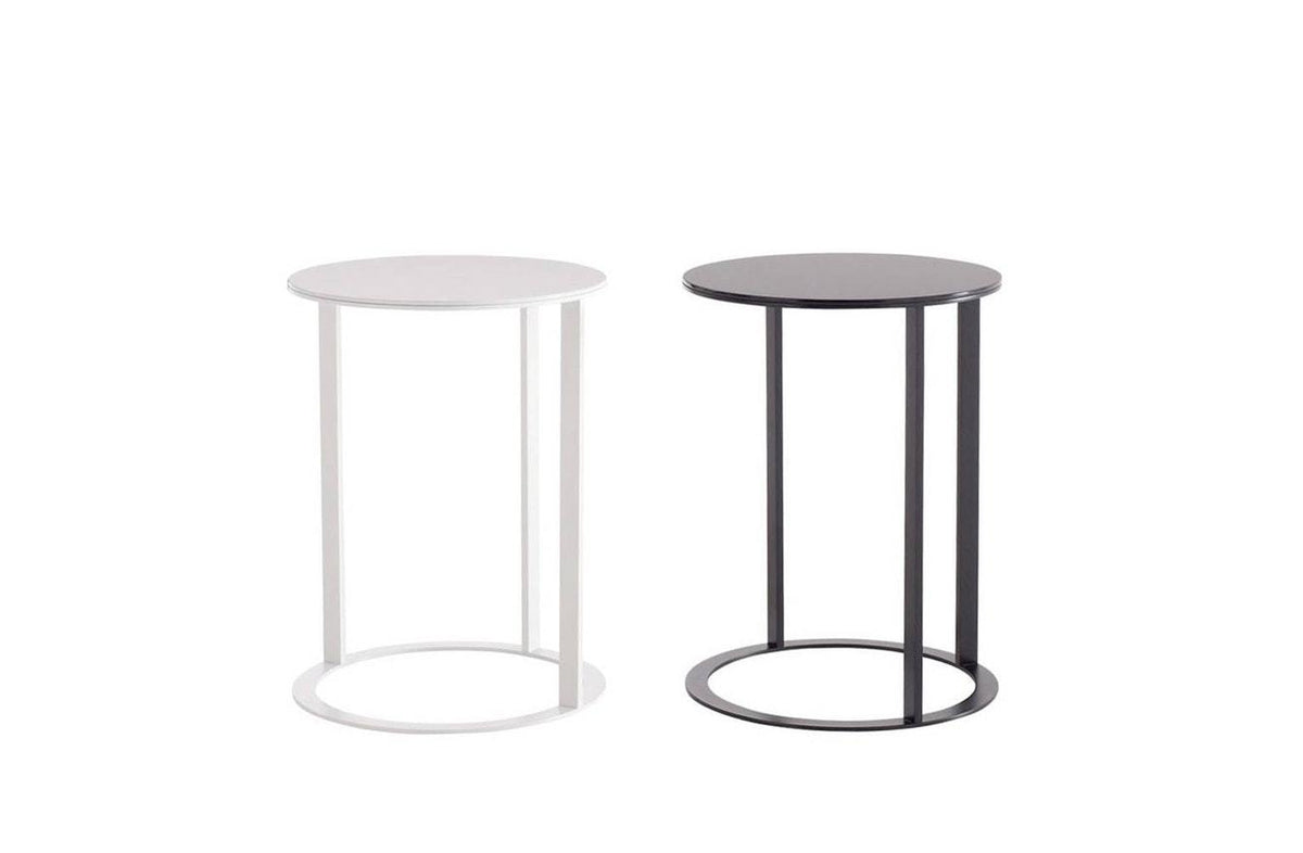 The Frank collection includes a further service element in steel. The asymmetrical position of the vertical elements enables the base to be drawn as close as possible to the seats.