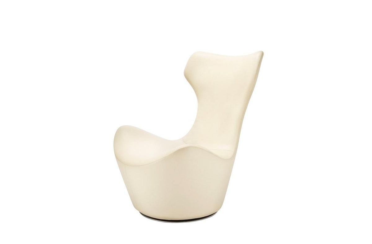 Naoto Fukasawa's Grande Papilio armchair takes the same organic shape full of fluid curves found in the original Papilio chair and draws it out into a larger and more statuesque form. While it shares several of the key attributes of the traditional wingchair – a large curved headrest and comfortable body-hugging shape – the Grande Papilio removes all other extraneous details. The result is a visually calming object that has a subtle presence in the room. Appearing like a single form carved, or perhaps poured, from a single material, the Grande Papilio armchair has a clever rear upholstery zip that removes all visible upholstery details creating a seamless sculptural object. As part of its remarkable comfort the design is equipped with a swivel mechanism that allows the user to rotate through 360 degrees. A matching ottoman provides further comfort and helps deliver a beautifully balanced tableau.