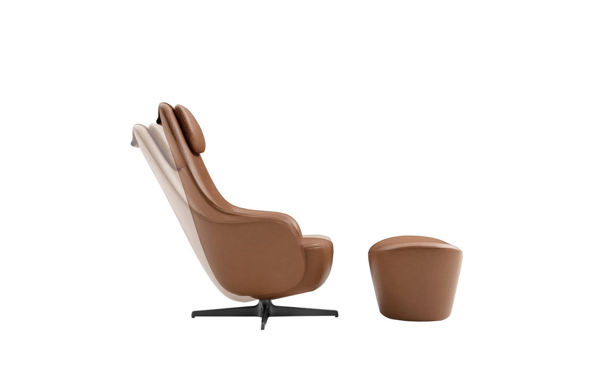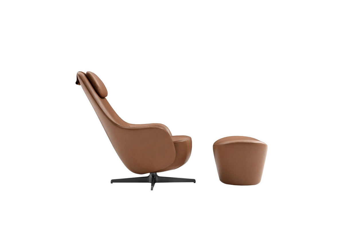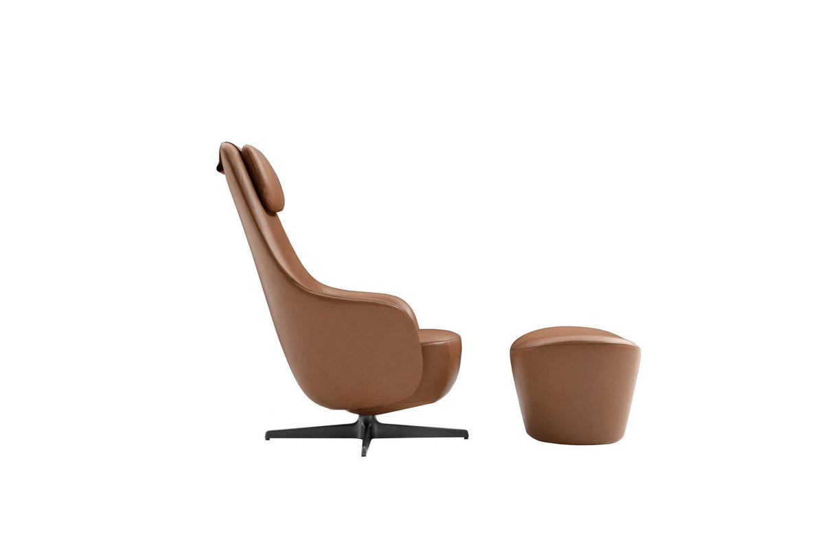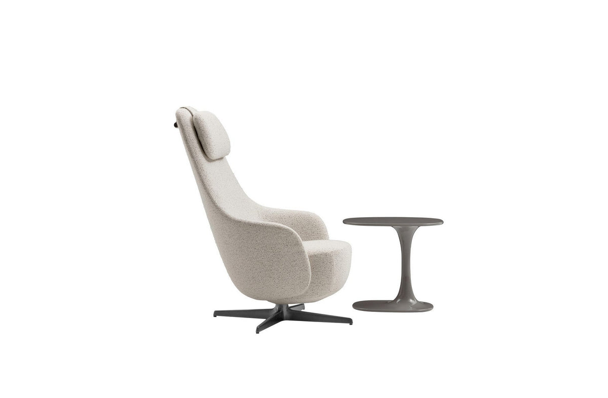 Harbor Laidback is a versatile and innovative armchair that redefines the concept of relaxation continuing the tradition of the Harbor armchairs, a classic it shares the origin of the inverted truncated cone shape and the harmonious and flowing line. Equipped with a swivel aluminium base with four spokes, Harbor