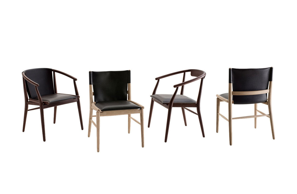 Antonio Citterio interprets the classic design of Chinese chairs in a contemporary key, rediscovering the craftsmanship of turned and curved wood, added to leather to make seats and backs that enhance the design. For the Jens chair, designed by Antonio Citterio with armrests in two versions and without armrests, the choice of wood in oak or natural wenge offers different shade variants.