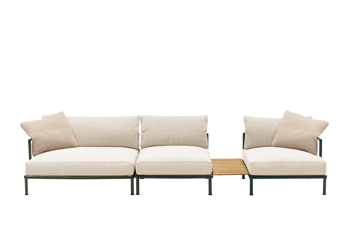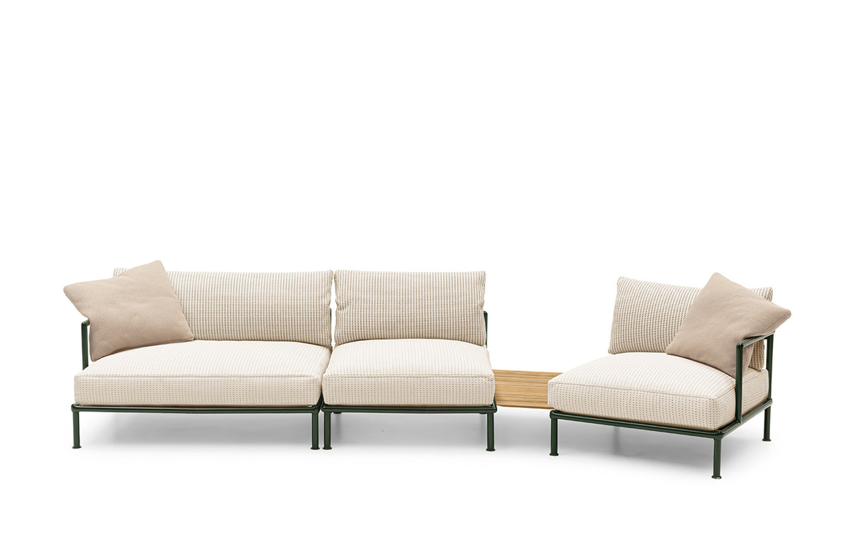 After the great success of Borea, Piero Lissoni and B&B Italia continue to pursue research and sustainability in the outdoor sector, creating Nooch, a modular seating system whose name is inspired by the tropical botanical garden of Nong Nooch in Thailand. Its key feature is the tubular structure in recycled aluminium, a light and strong material, completely recyclable.