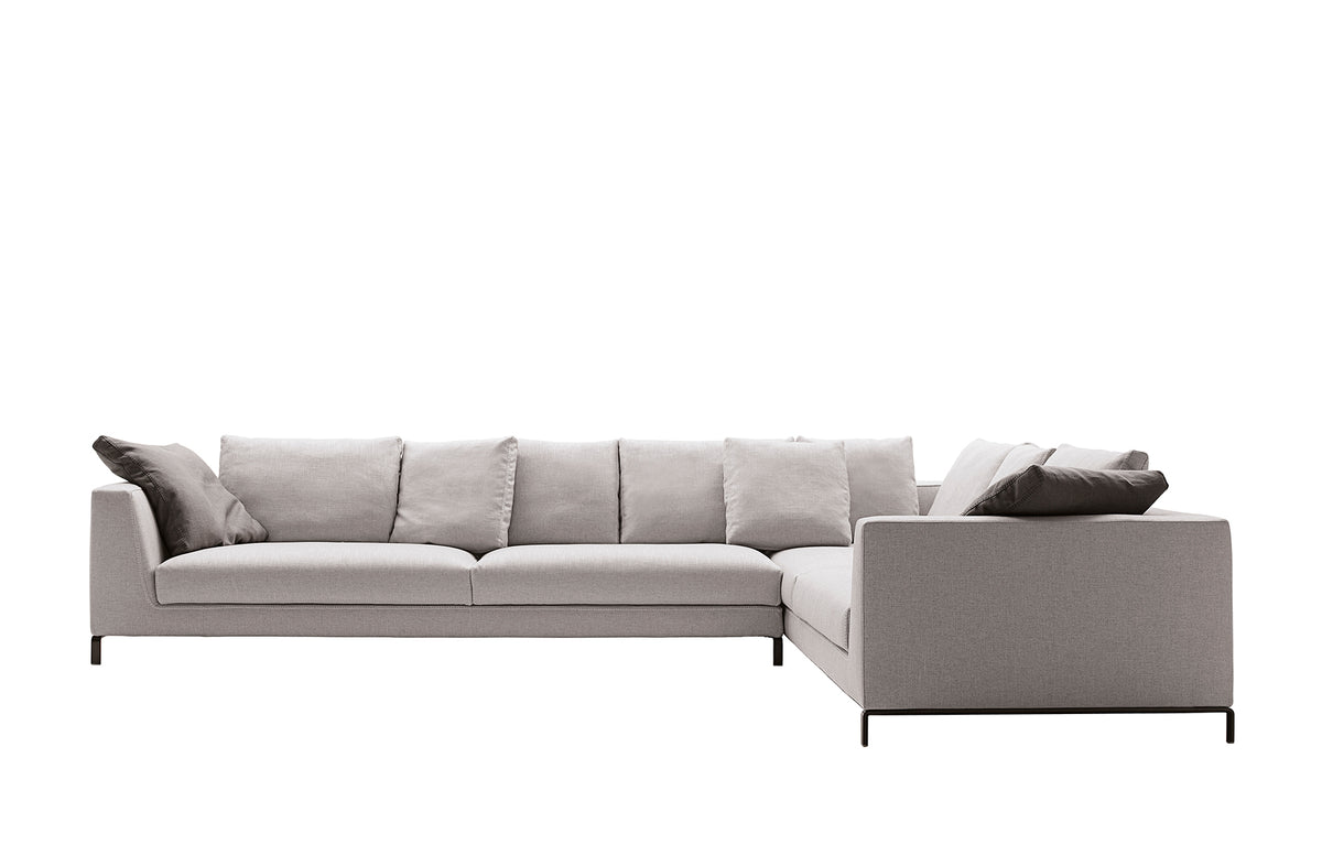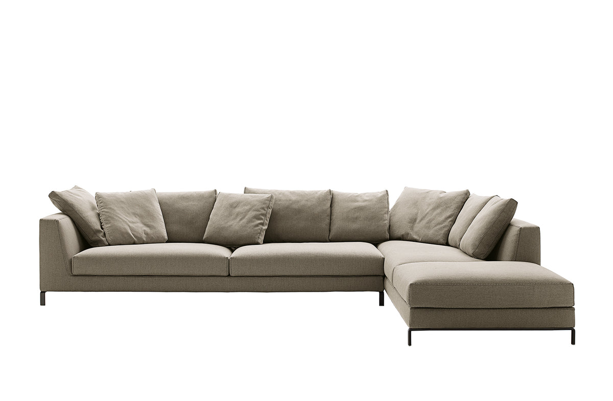 A successful design strategy that achieves a balance of functional and aesthetic features, and entrusts the details to the right role: the seating system Ray is designed for a long life. Modular, with two depths, with an extensive compositional range that includes linear and corner elements and chaise longue, it stands out for the tailoring detail of the blanket stitch that runs along the profiles of the cover, both self-coloured and in contrasting hues.
