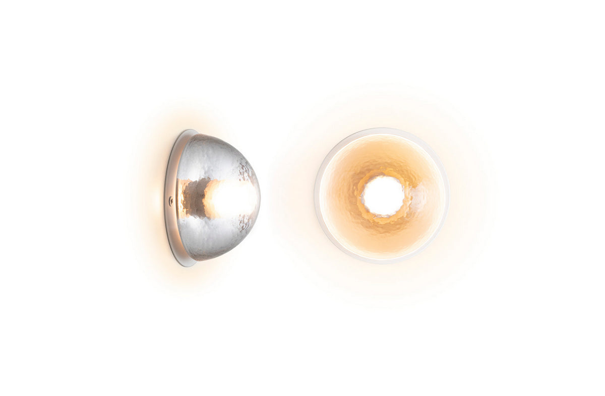 14s/sp is a cast-glass half-sphere with a frosted cylindrical void that houses a low-voltage Xenon or LED lamp. The pendant is designed to mount on either the wall or the ceiling.