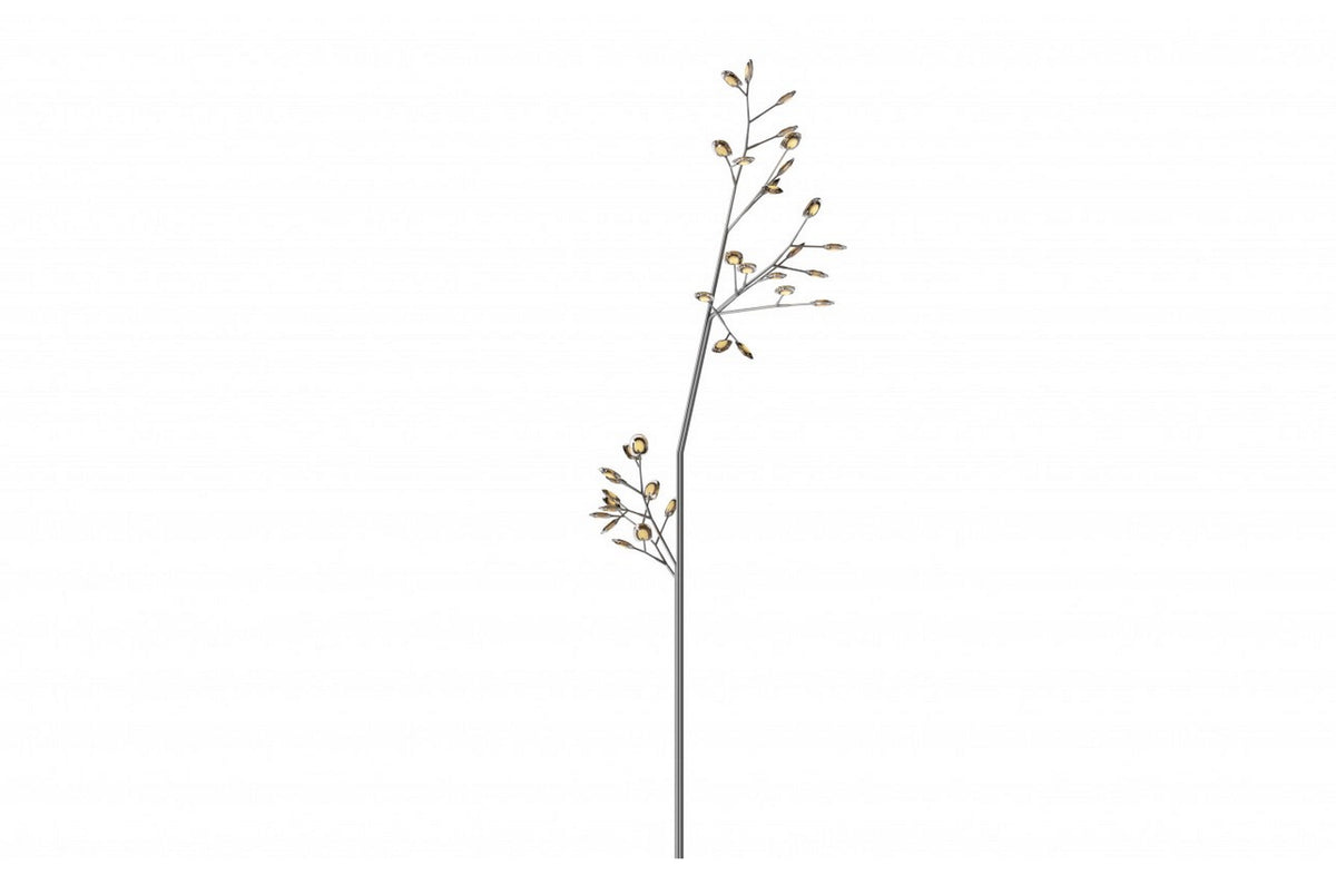 The 16.35 is a tree-like 16 installation using 35 pendants and a modular stainless steel armature system mounted to a three tube stainless steel ‘aspen’ base.