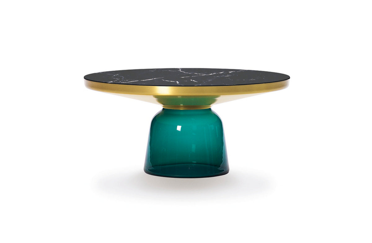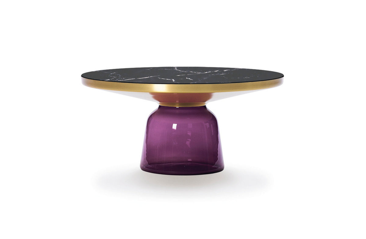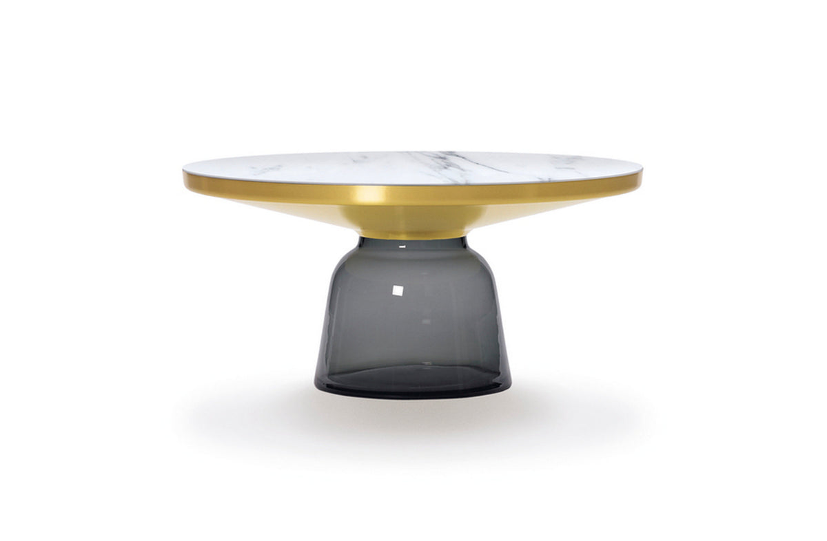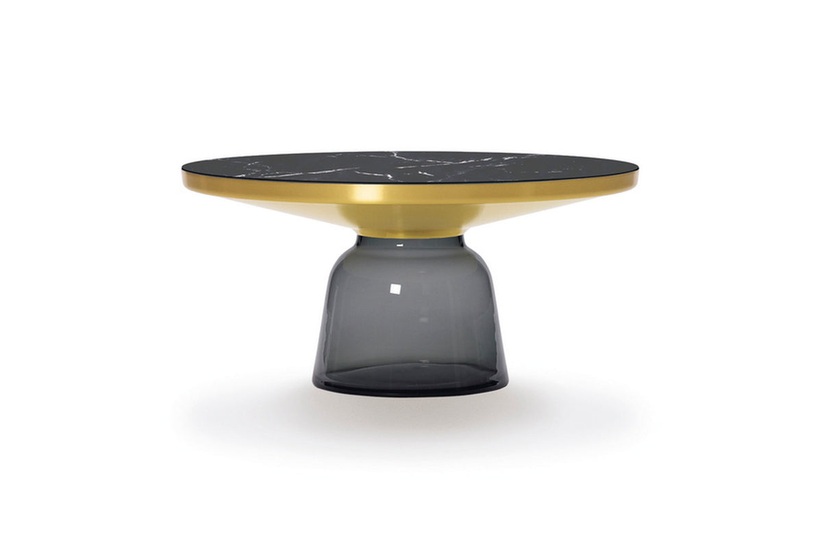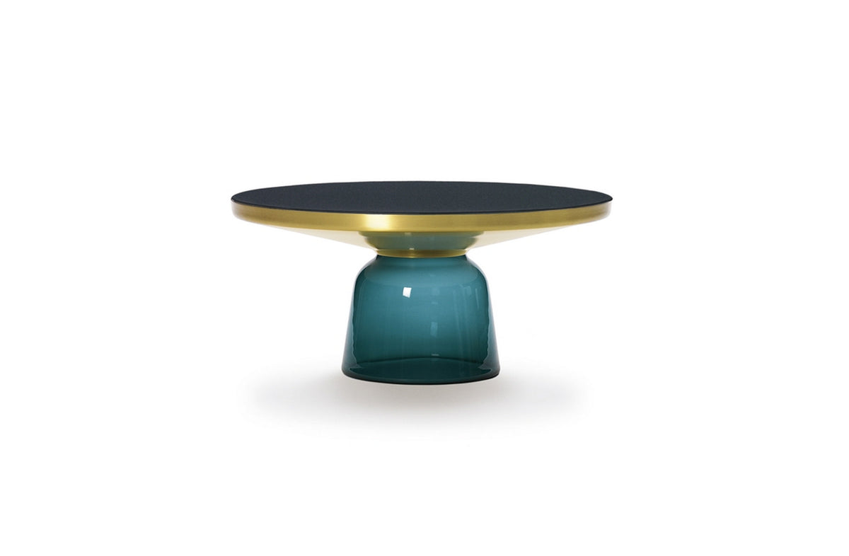 The Bell Table by Sebastian Herkner turns our perceptual habits on their head, using the lightweight, fragile material of glass as base for a metal top that seems to float above it. Hand-blown in the traditional manner using a wooden mould, the transparent tinted glass base asserts a sculptural presence in space, contrasting intriguingly with the solid brass frame on top while also forming with it a harmonious unit recalling the elegant curving silhouette of a bell. With its appealing reflective surfaces and contrasting materials, the side table adds a distinctive touch to domestic interiors. It celebrates the beauty of the materials with their colours and surfaces, along with the virtues of hand-craftsmanship. The Bell Table by Sebastian Herkner is a masterwork of traditional hand craftsmanship. Each table is handmade, meaning that small bubbles or bumps in the glass are a characteristic feature.