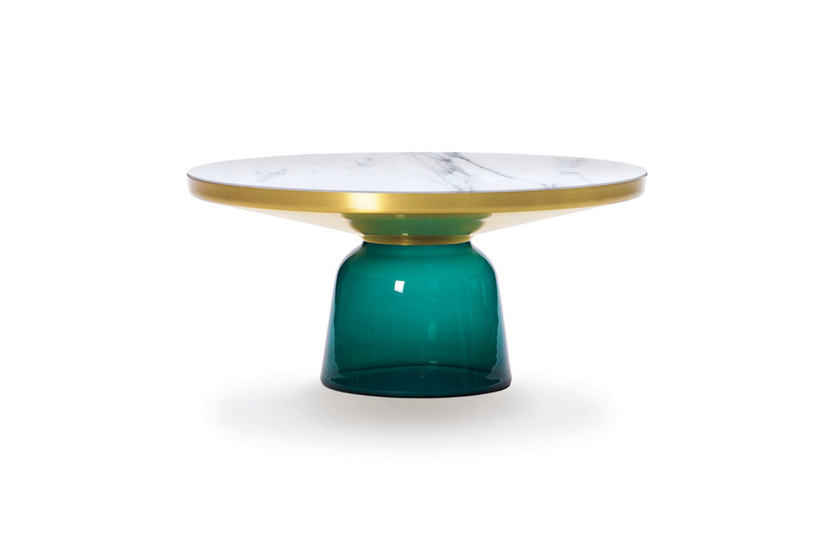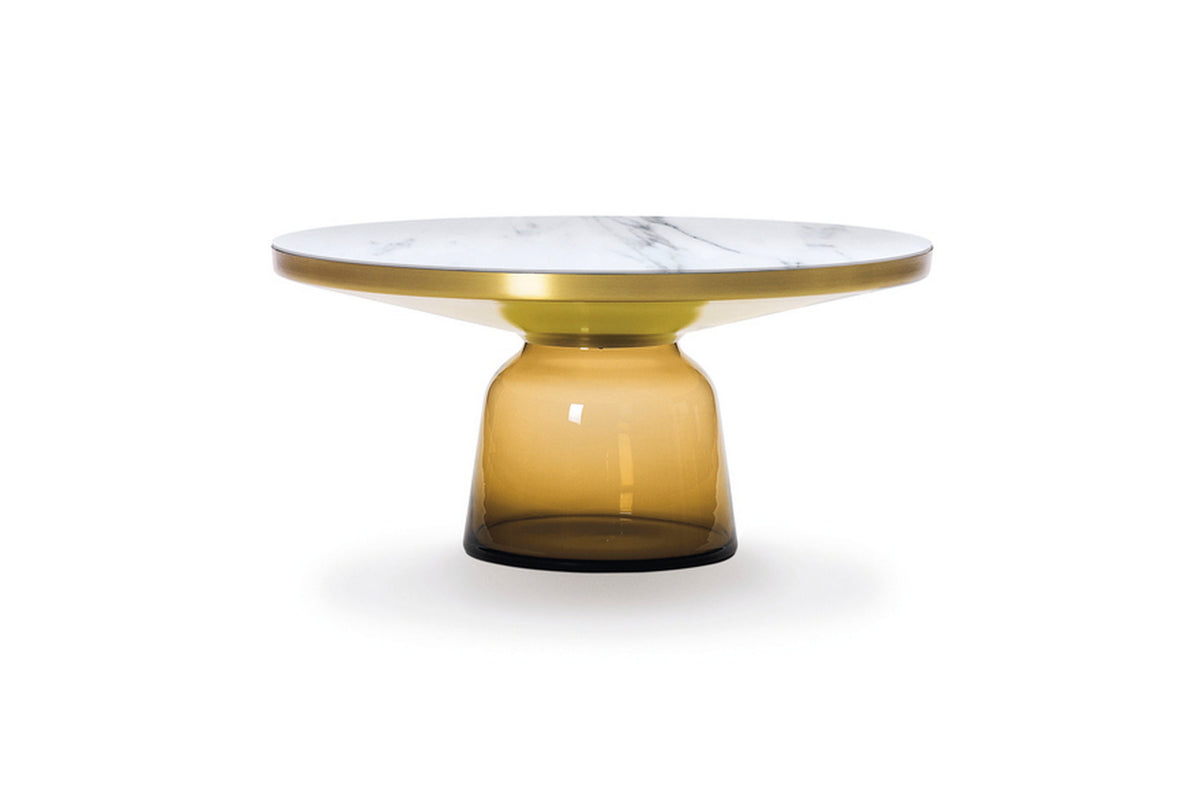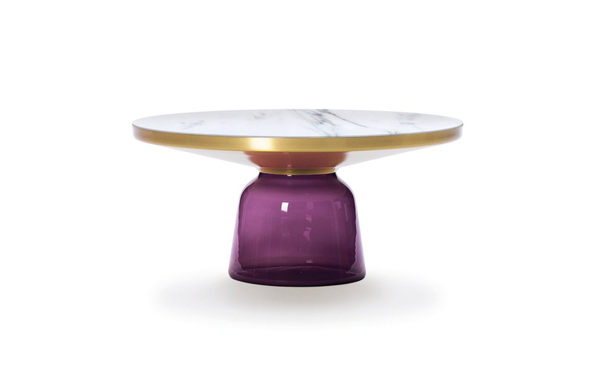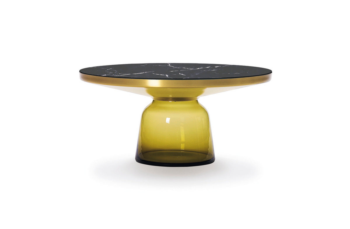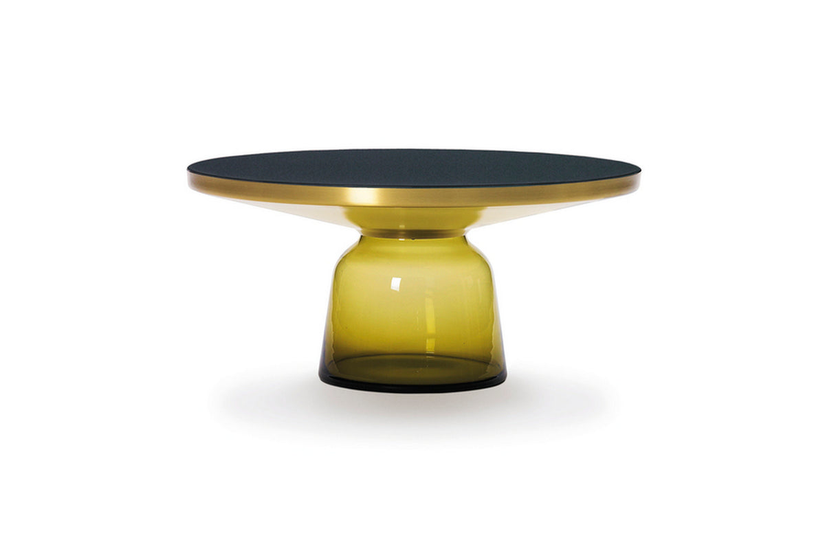 The Bell Table by Sebastian Herkner turns our perceptual habits on their head, using the lightweight, fragile material of glass as base for a metal top that seems to float above it. Hand-blown in the traditional manner using a wooden mould, the transparent tinted glass base asserts a sculptural presence in space, contrasting intriguingly with the solid brass frame on top while also forming with it a harmonious unit recalling the elegant curving silhouette of a bell. With its appealing reflective surfaces and contrasting materials, the side table adds a distinctive touch to domestic interiors. It celebrates the beauty of the materials with their colours and surfaces, along with the virtues of hand-craftsmanship. The Bell Table by Sebastian Herkner is a masterwork of traditional hand craftsmanship. Each table is handmade, meaning that small bubbles or bumps in the glass are a characteristic feature.