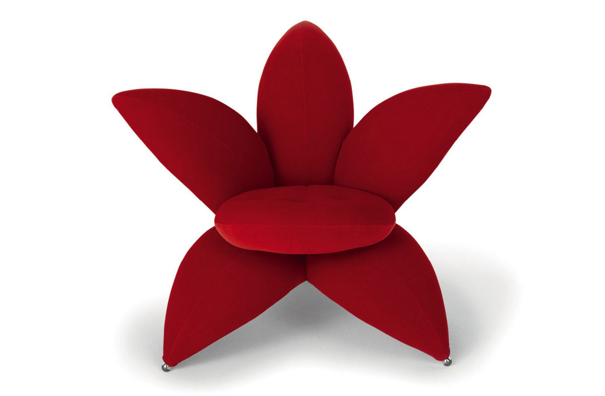 Armchair lily-shaped, delicate in appearance, but hiding a solid steel structure modeled by hand. High technology combined with performance skills.