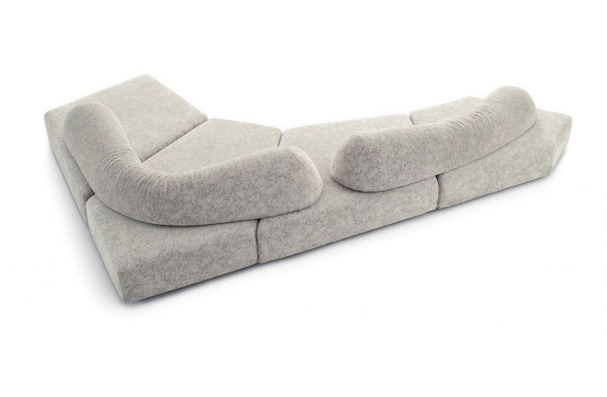 On the Rocks sofa brings in a new dimension of comfort, where the sofa and the people who live it take centre stage: a soft sculpture that can be mixed and matched as you need, to share the pleasure of the greatest relax or to enjoy it all by yourself. Wide, with no stiff structures, with four seating elements in different shapes and two backrests, separated from the base and in different sizes that can be arranged as you prefer.