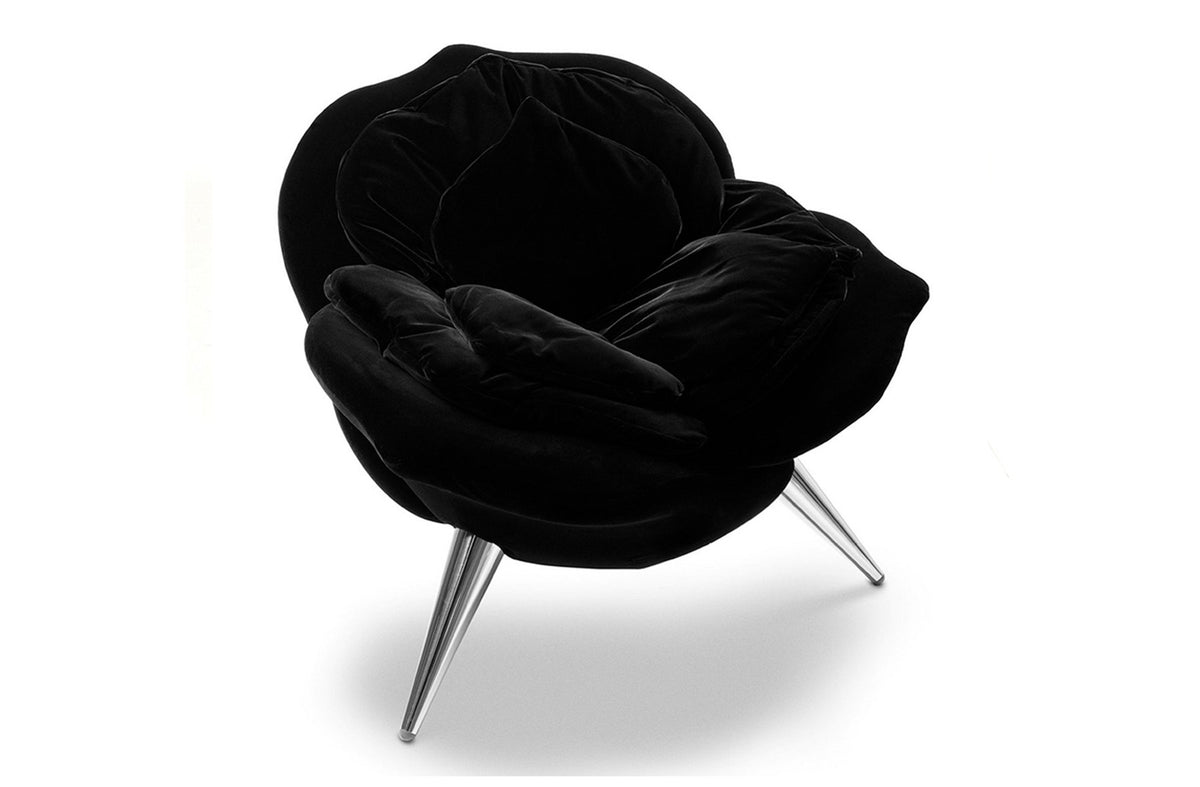 The petals, which form the padding and make the seat welcoming, are made one by one. The frame is in molded metal with small parts in shaped wood.