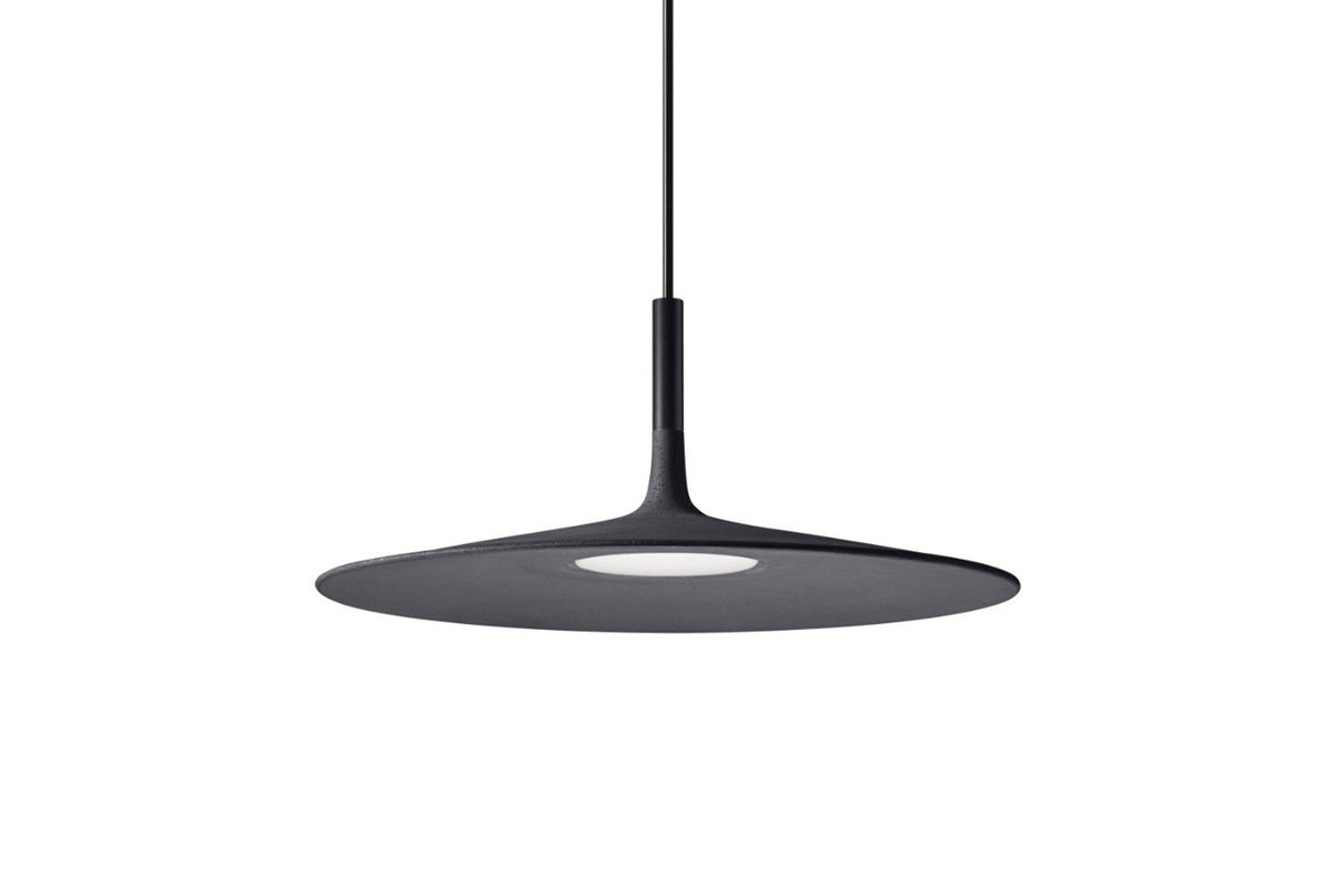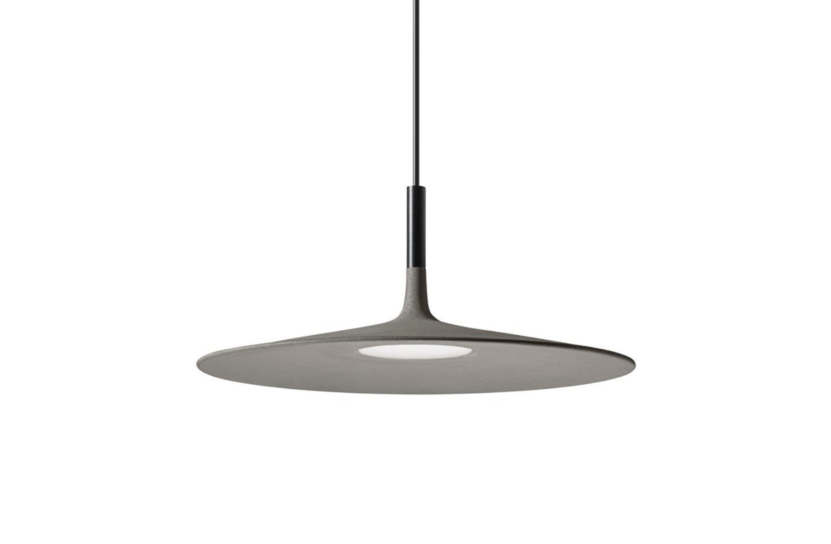 A special, exclusively formulated concrete plays the starring role in the Aplomb lamps. The especially large and slimline design of the Aplomb Large suspension lamp diffuses broad beam of light.