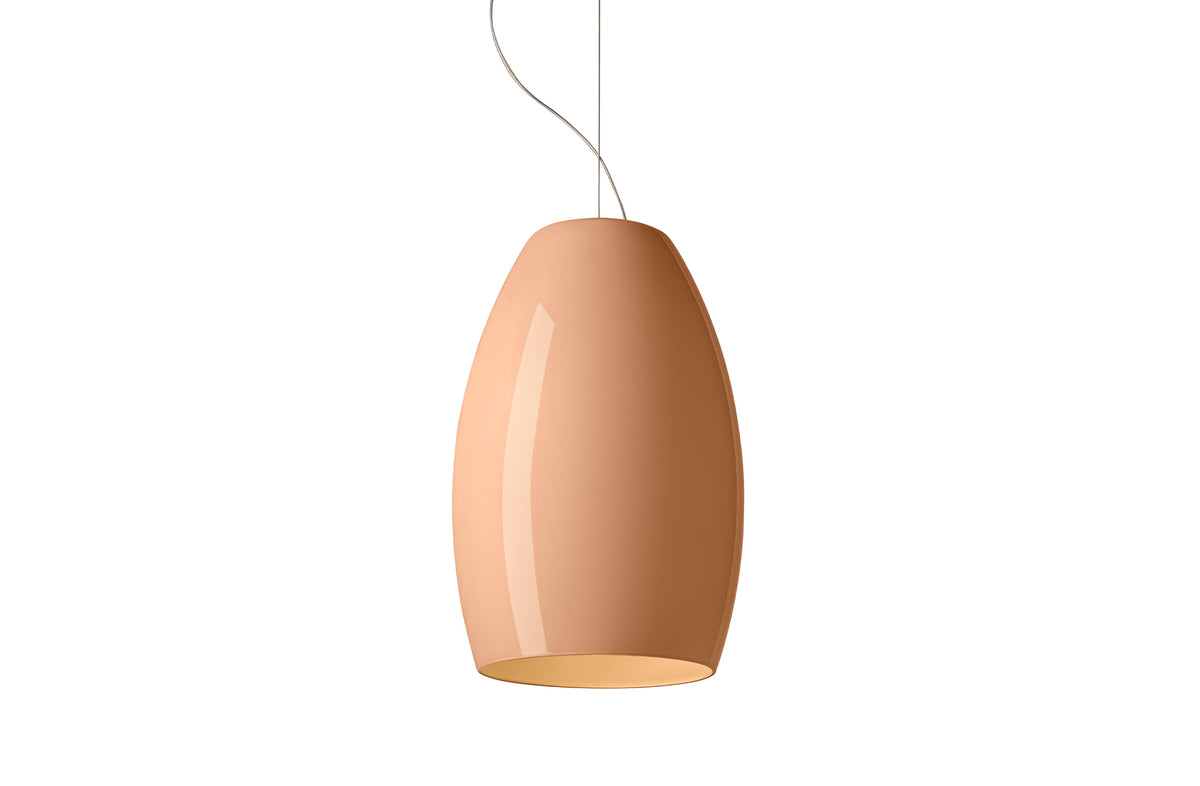 The magic of blown glass, for a family of lamps that explore various combinations of shapes and colours, also devised to create multiple compositions. With its elongated diffuser, Buds 1 dons a warm brown hue or a warm white, which emphasises the beam of light cast downwards.