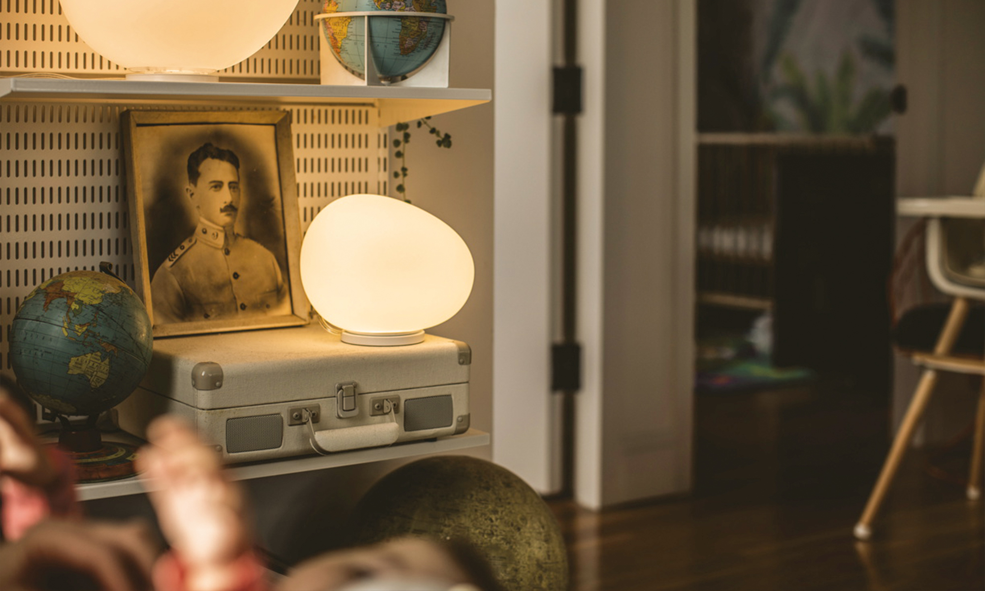 The Gregg table lamps have a delightful organic shape, like pebbles honed by a river, and they are made of hand-blown glass in various sizes.