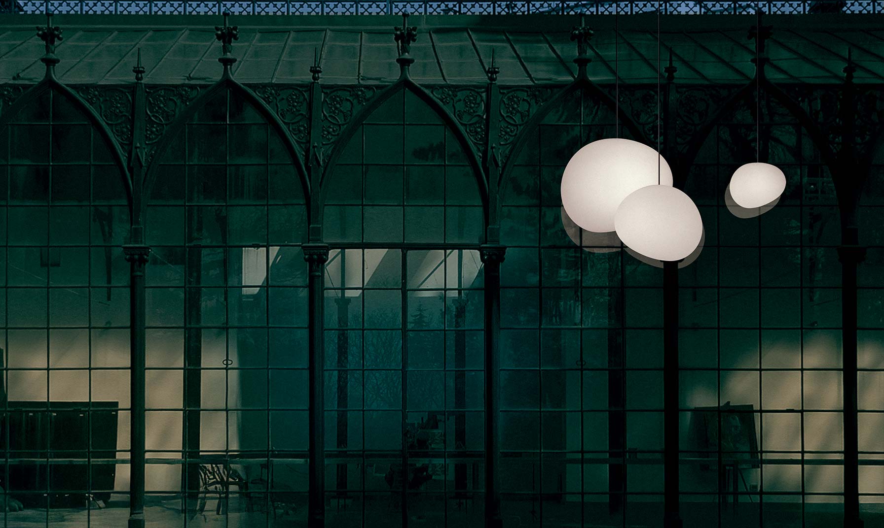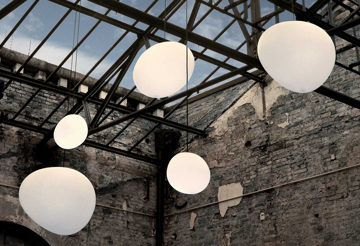 With organic, familiar shapes, the Gregg Outdoor suspension lamps are designed to create luminous presences and compositions out in the open air, thanks also to the various sizes available.