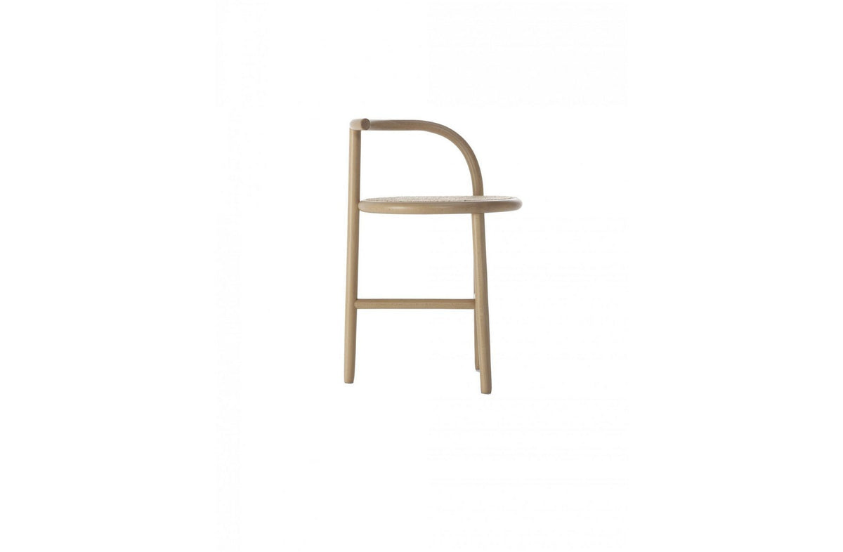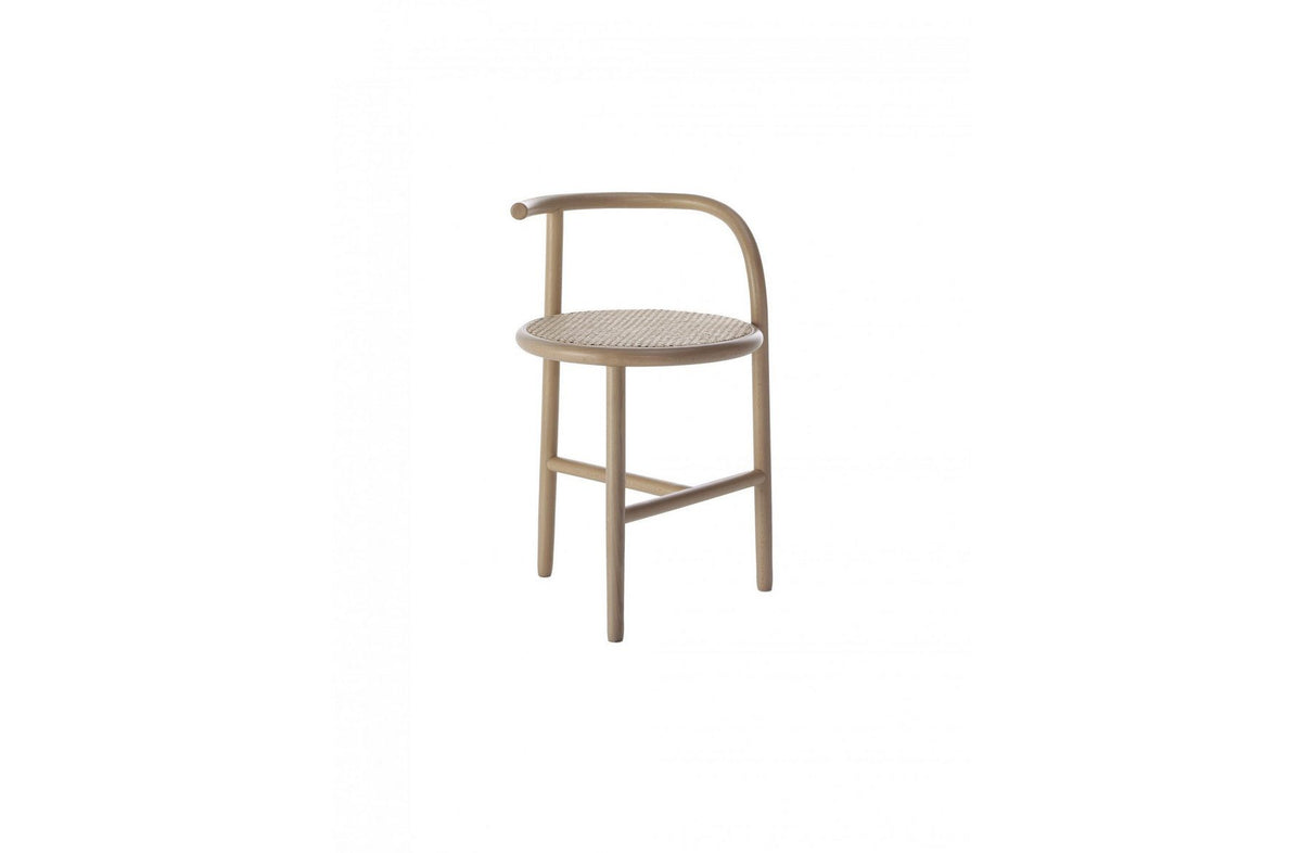 The refined elegance of the Japanese minimalism by Nendo abstracts from the brands' stylistic features, in order to reinterpret them in a contemporary light. A rigorous and poetic approach which distils the essence of the design research, where the steam-bent wood expresses only one structural detail, which draws the attention on each element of the SINGLE CURVE COLLECTION: low table, dining table and stool in three or four legs version. The three-leg stool proposed by Nendo in the SINGLE CURVE COLLECTION reinterpret with a discrete irony the constituent elements of Wiener GTV Design: the woven cane seat matches with the steam-bent beech element proposed by the backrest.
