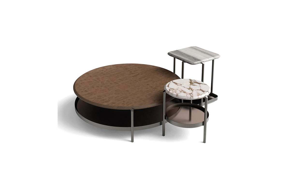 Low table but also supporting element on the back of the sofa, Skyline enables free aesthetic and functional compositions.