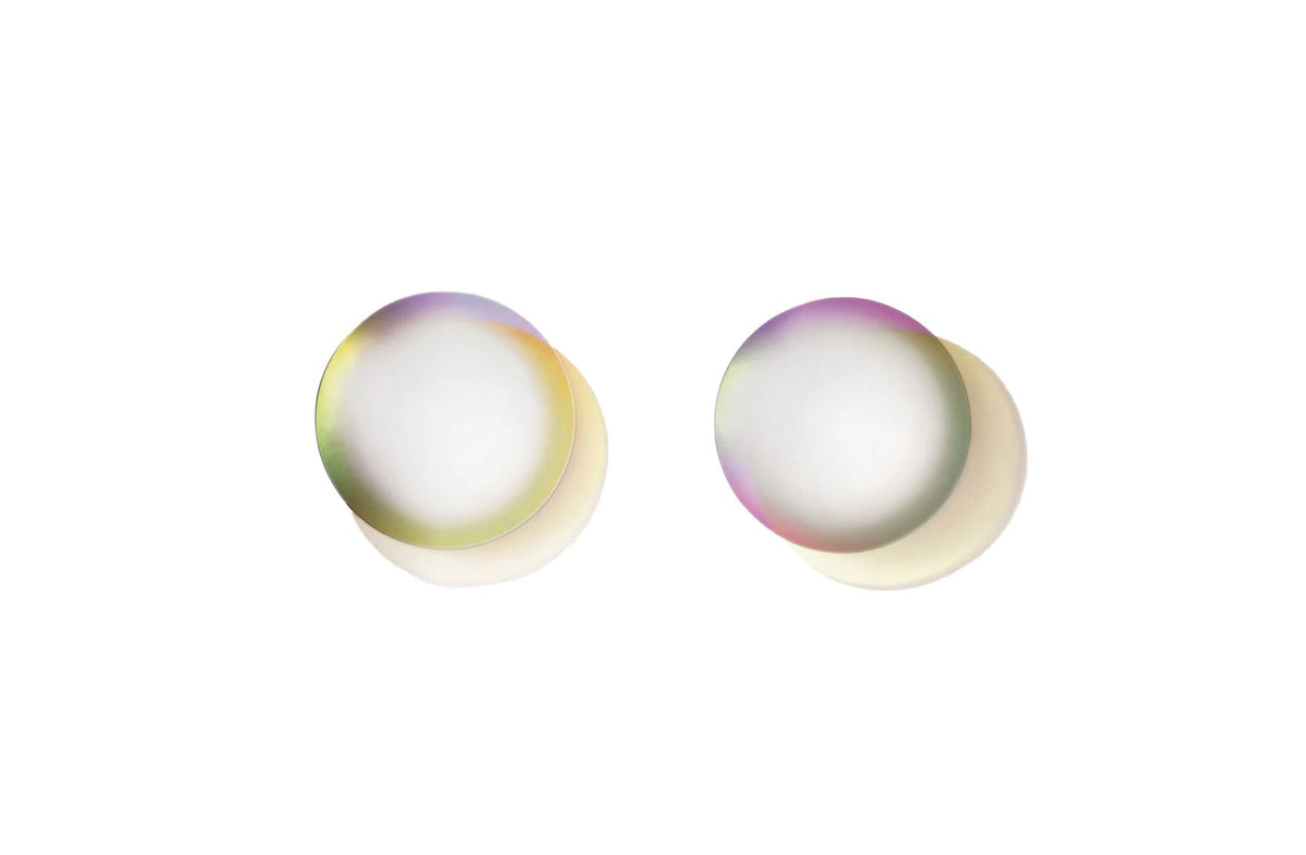 A series of mirrors in extralight glass. Made with refined processing techniques, a degrading shaded silvering mix and the magnificent iridescent multichromatic finish, a feature of the Shimmer collection.