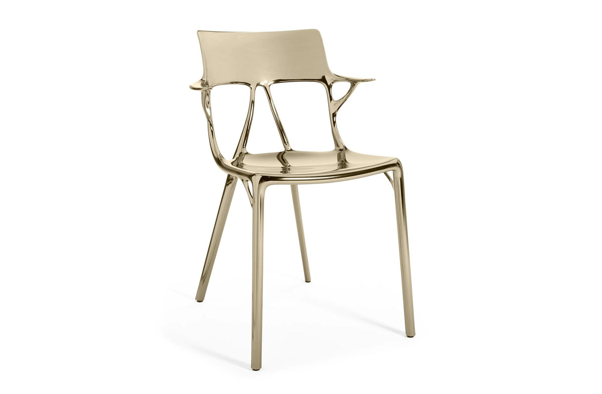 A.I. Metal is a new metallic version of the chair, made for the first time from recycled material and boasting unchanged looks and structural strength combined with generative design. A.I. Metal is available in bronze and titanium colour variants.