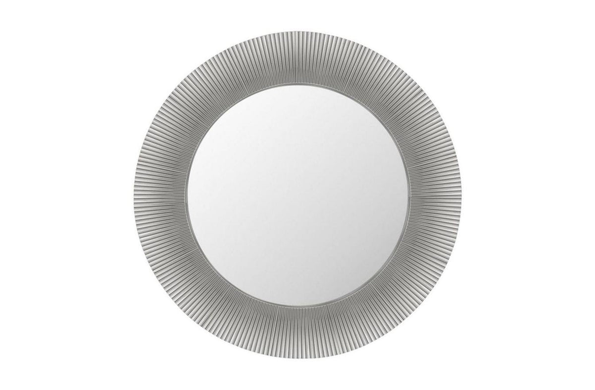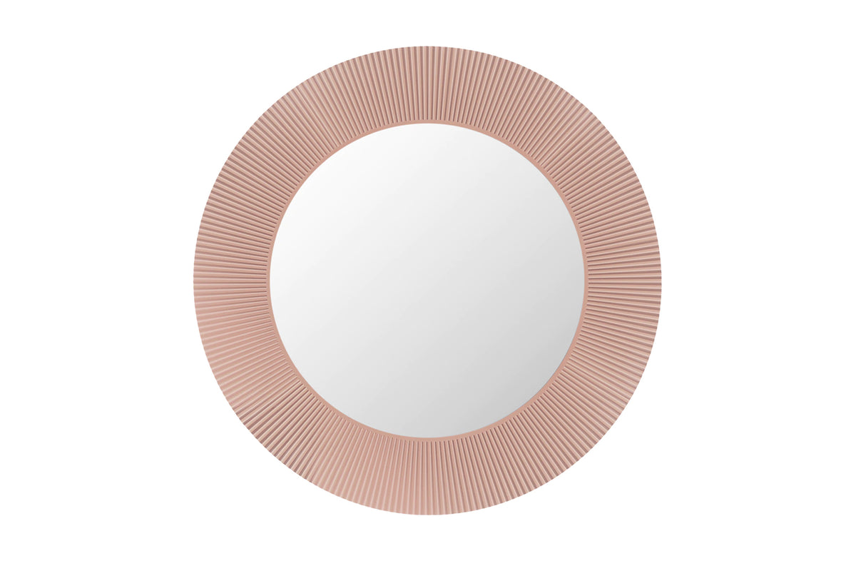 Round mirror with a transparent or coloured frame, with a unique pleated effect.