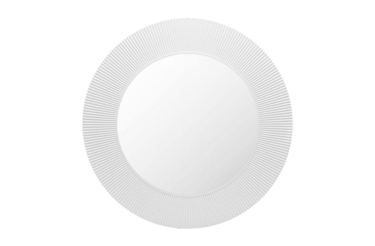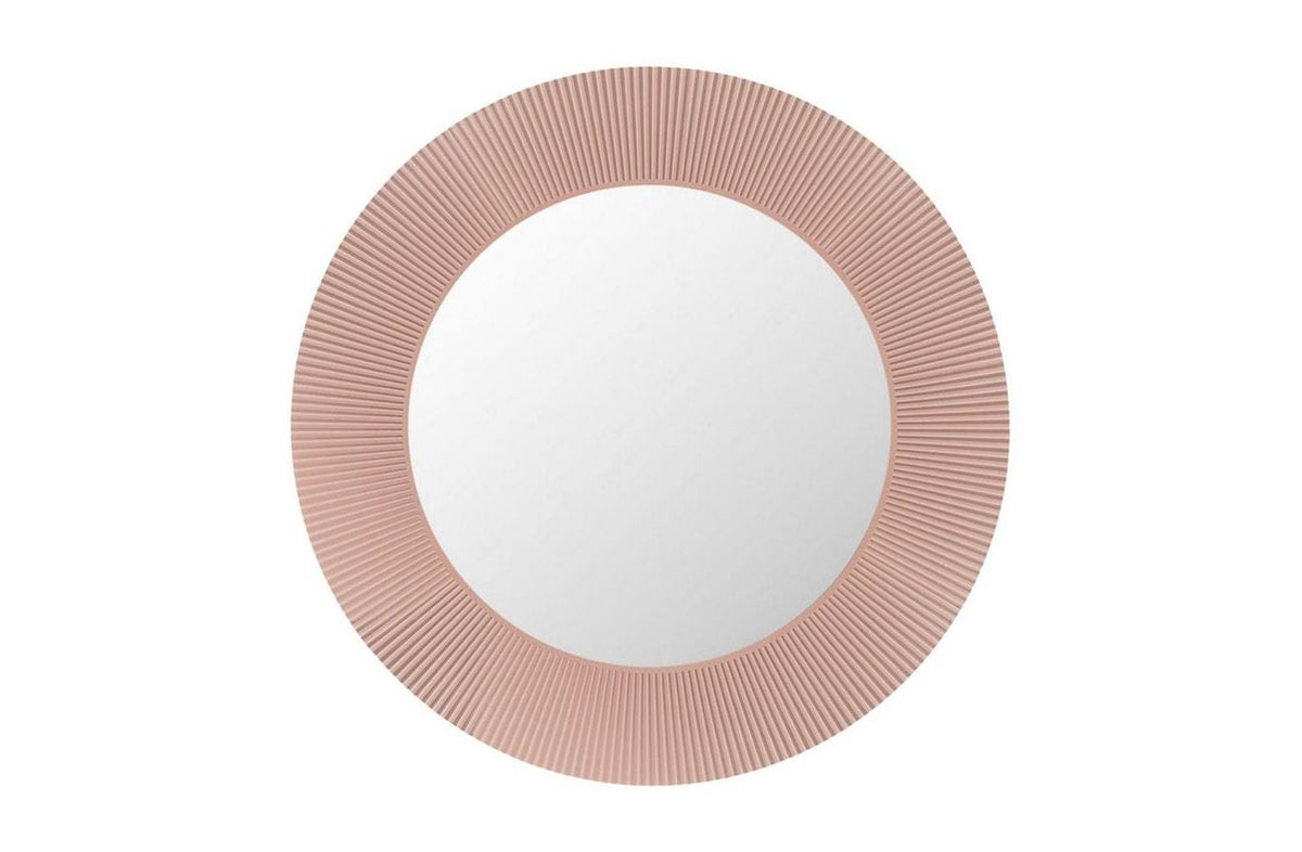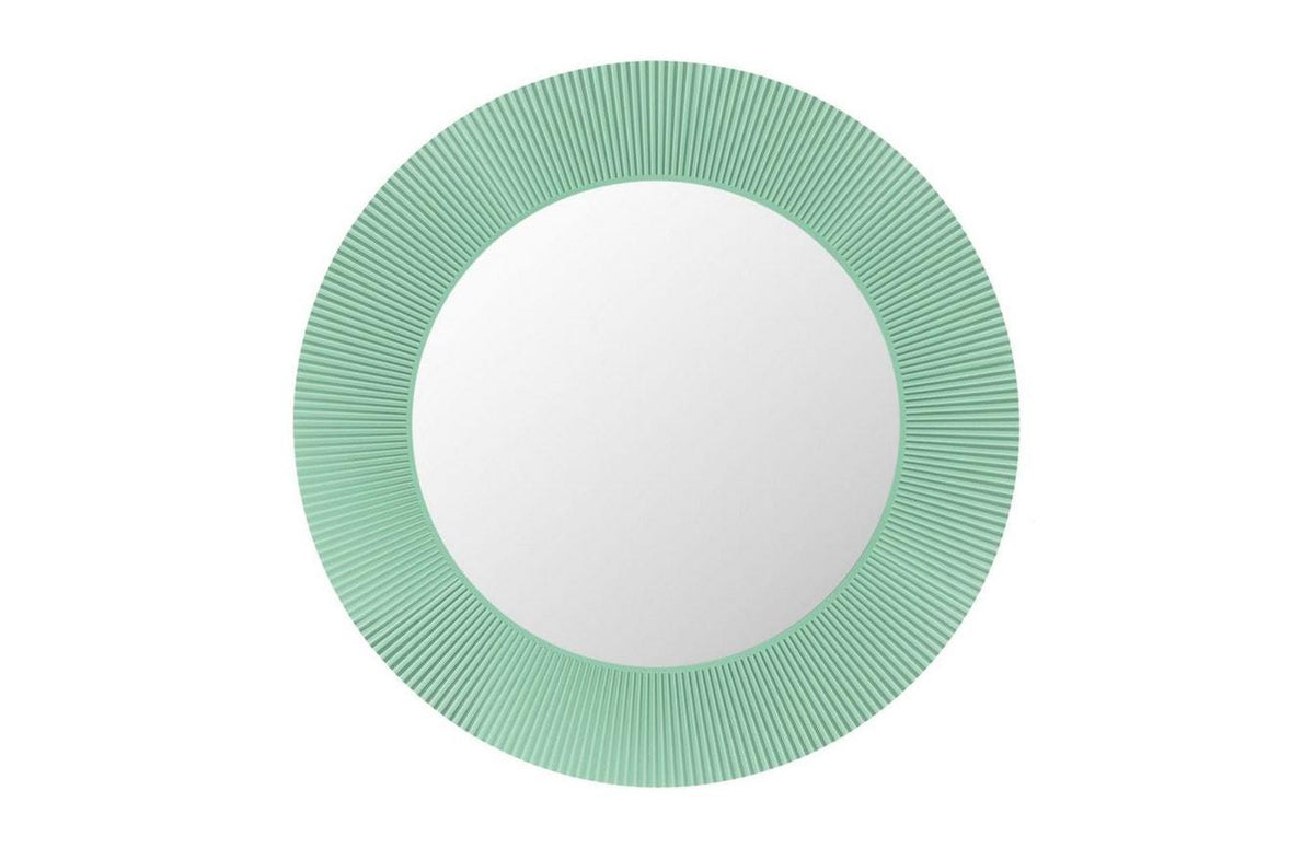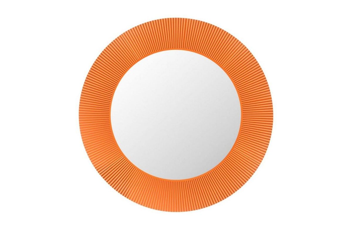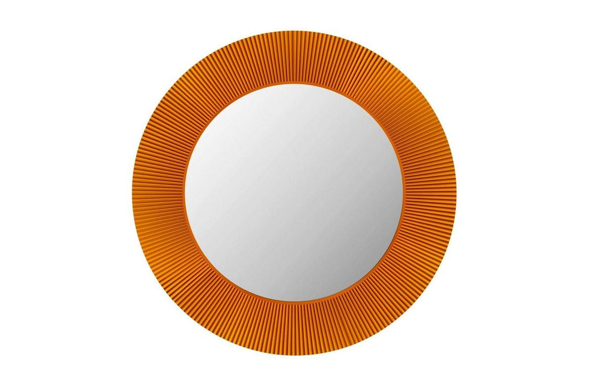 Round mirror with a transparent or coloured frame, with a unique pleated effect.