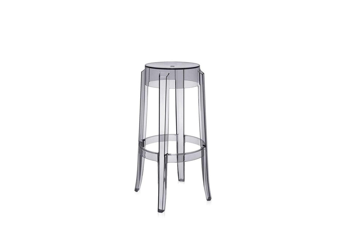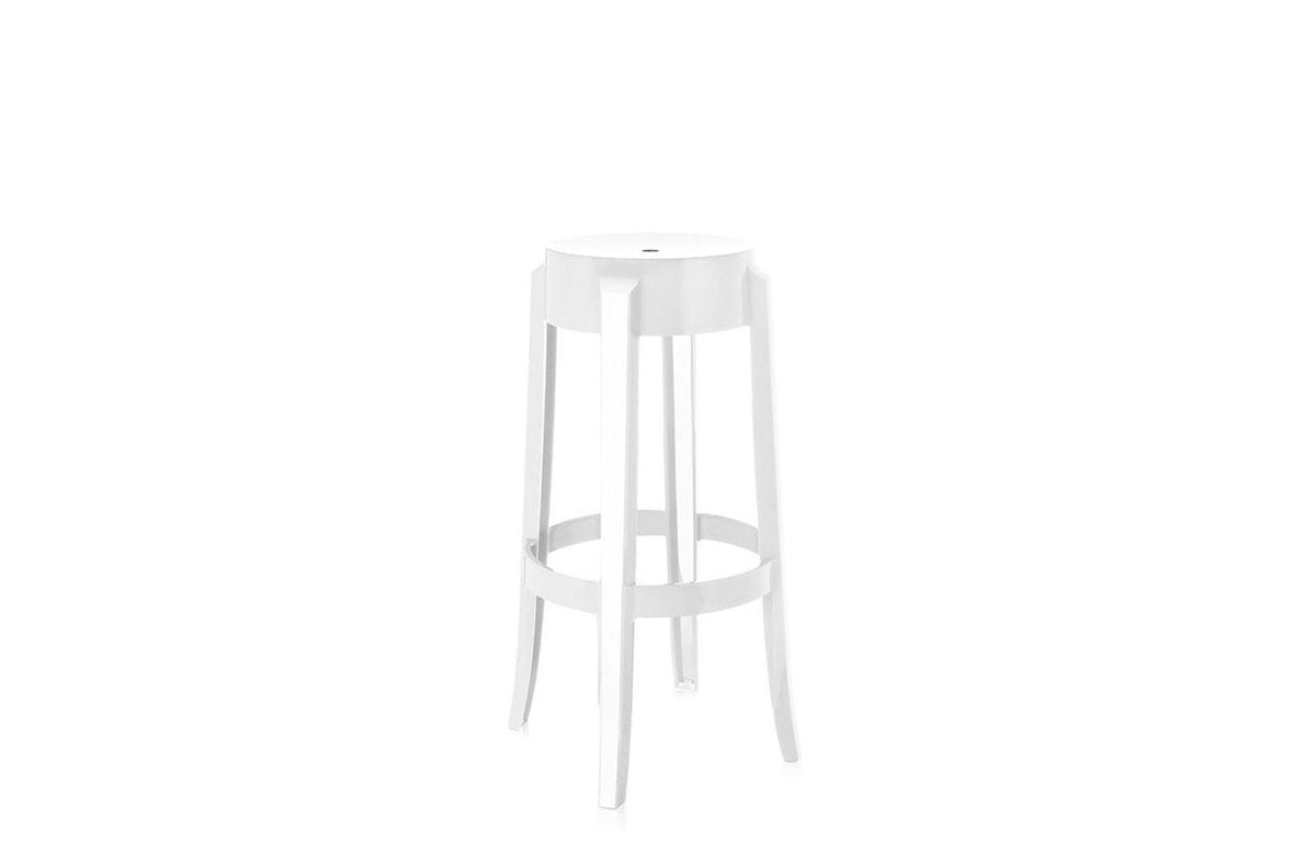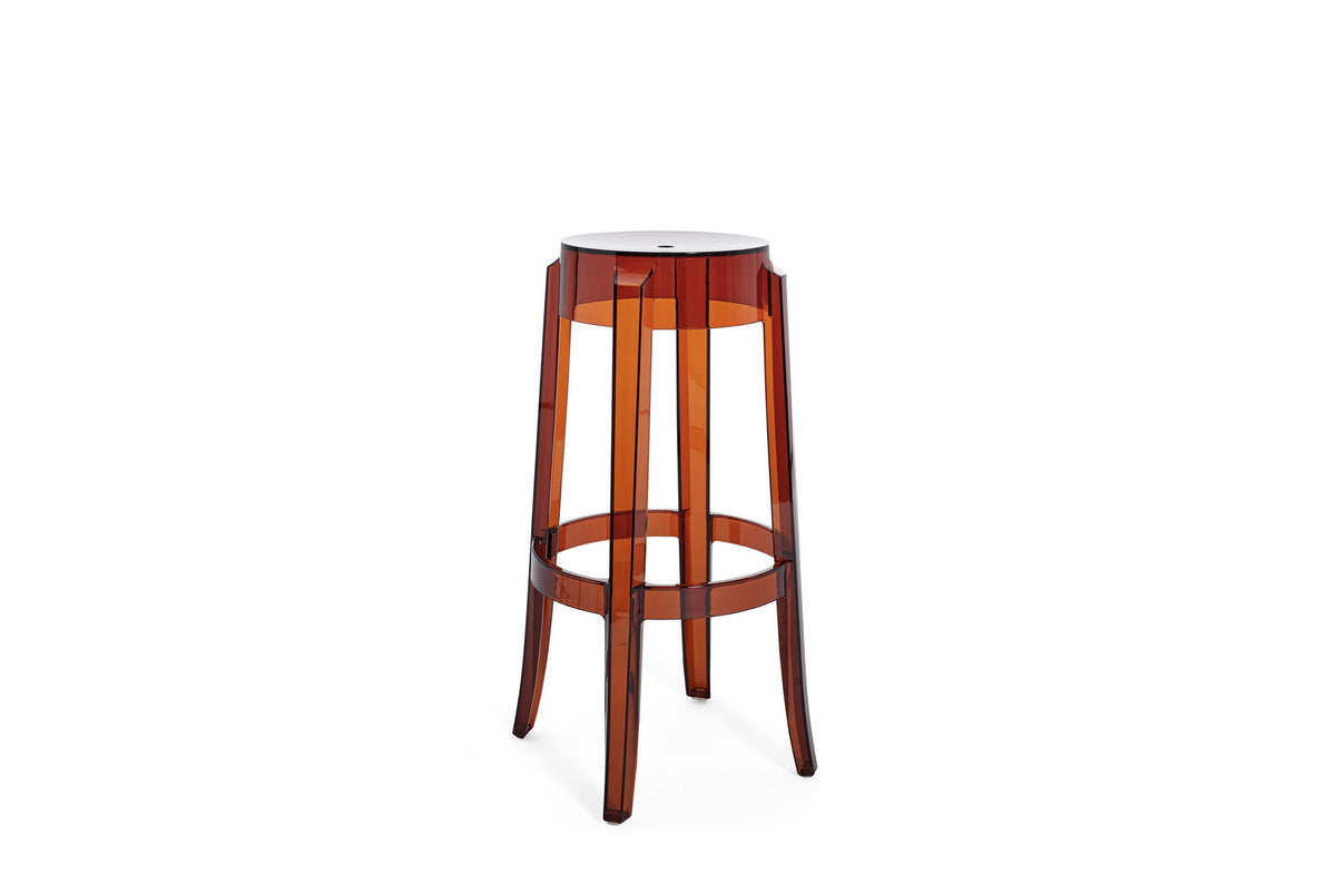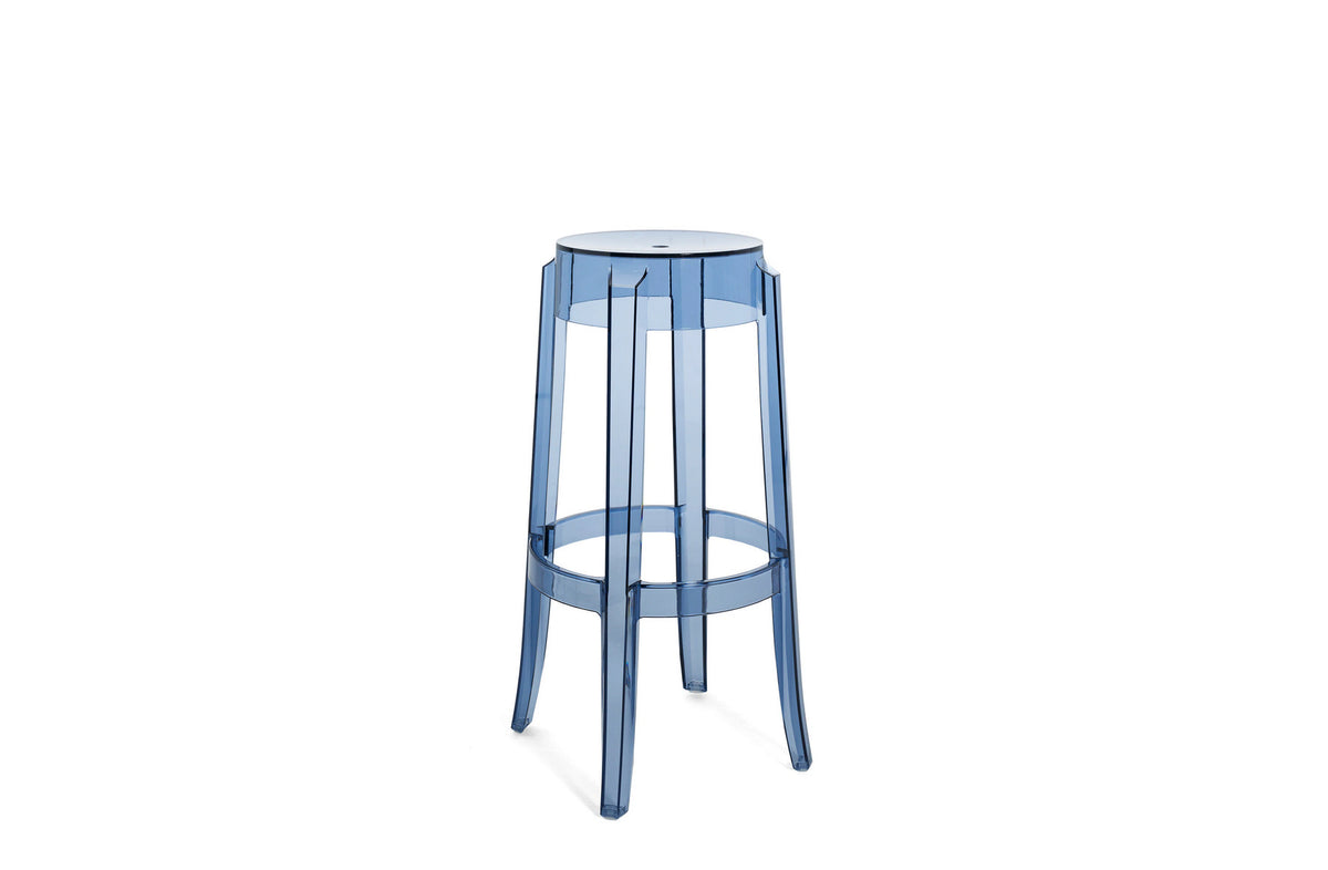 Charles Ghost is the stool that mirrors the shape of traditional 19th century seats. The line of the leg is rounded and slightly curled, an icon of the classic stool. It is available in three different heights: from the stool for occasional, informal seating, to the stool for the kitchen counter or bar. It adapts to both indoor and outdoor settings.
