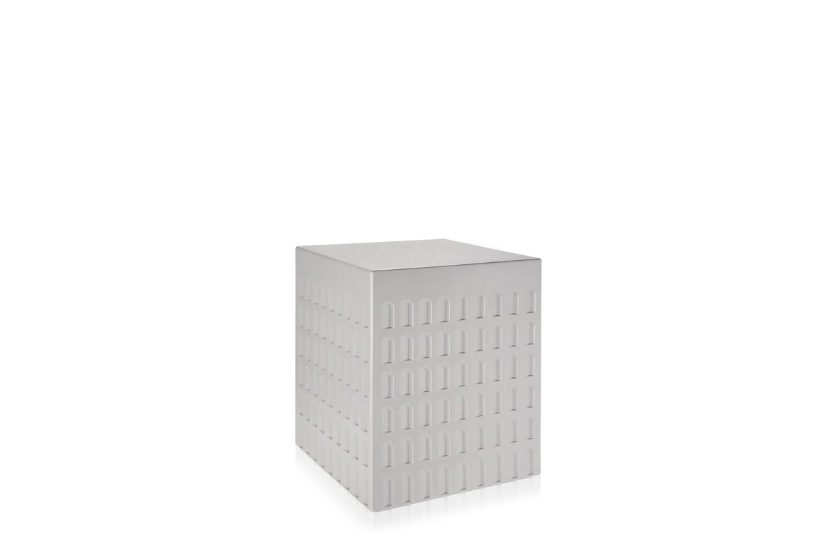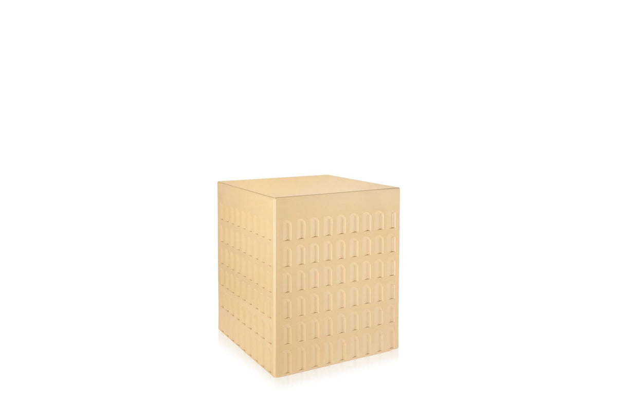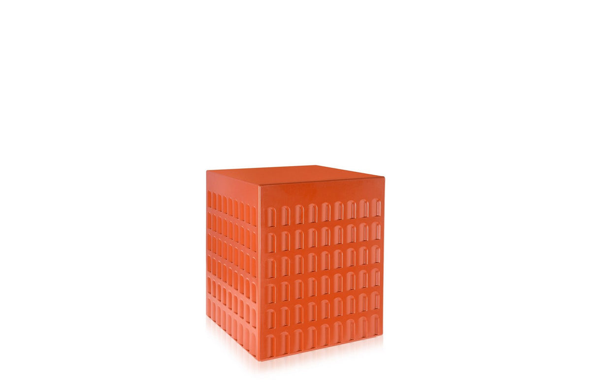 The EUR stool is a cube printed with shapes and geometries inspired, to scale, by Italian rationalist architecture of the 1930s and 40s. The stool can be multi-purposed as seat or support and fits into a variety of locations and styles.