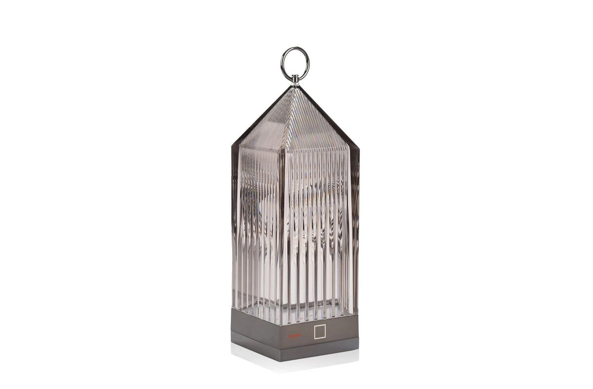 Lantern is an original portable LED, transparent, “chargeable”, injection moulded lamp that charges by placing it onto a charging base. The light is projected by a graphic effect of the design.