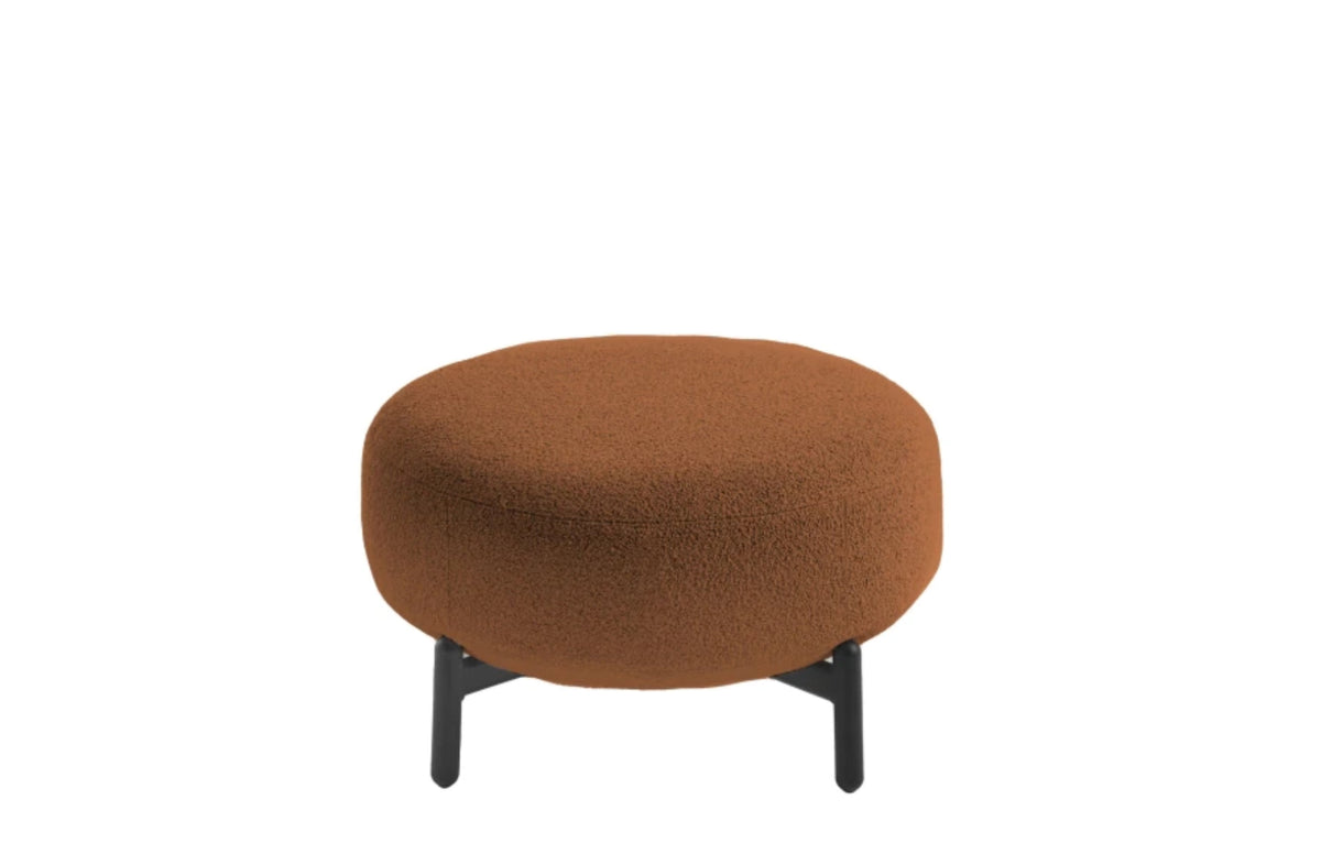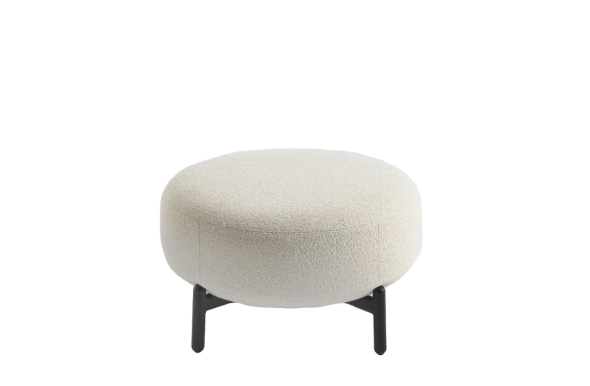 LUNAM is an enchanting living space furniture collection inspired by the dreamy atmosphere of a lunar landscape. An essential, painted metal structure supports generously dimensioned upholstered sections. Sofa, armchair and pouffe come in soft bouclé fabric or mélange (the contract option) in Olive Green, Petroleum, Siena Earth and a choice of greys.