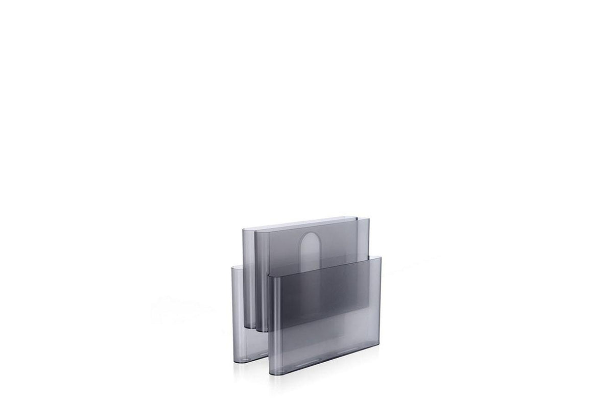This is a 4-pocket magazine rack with a central handle for easy lifting. The shape is essential and decidedly practical. It is a beautiful object which can be slotted into any setting. A classic of design, an article which is part of the history of Kartell.