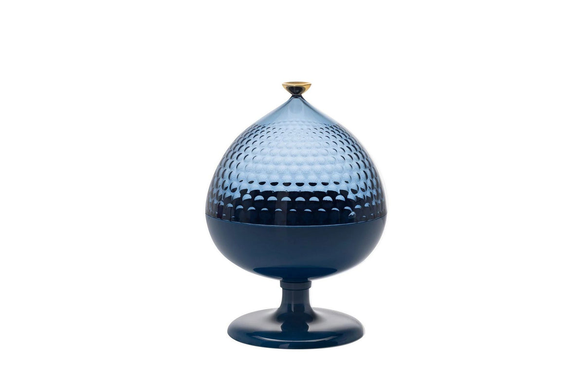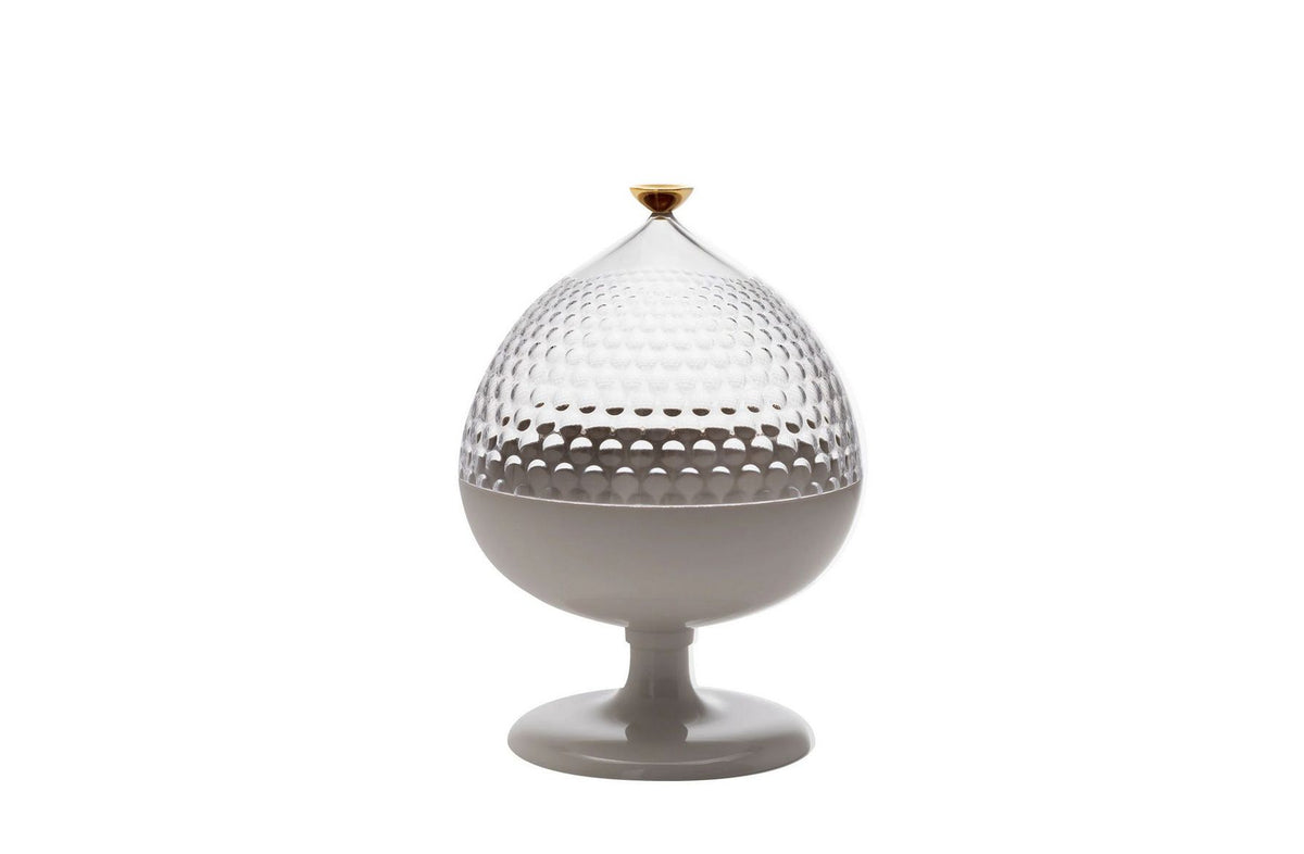 Pumo is a brand-new multi-purpose container that recalls the shapes of the traditional Apulian object of good omen, now revised for Kartell with a multi-faceted lid, also ideal as a centrepiece