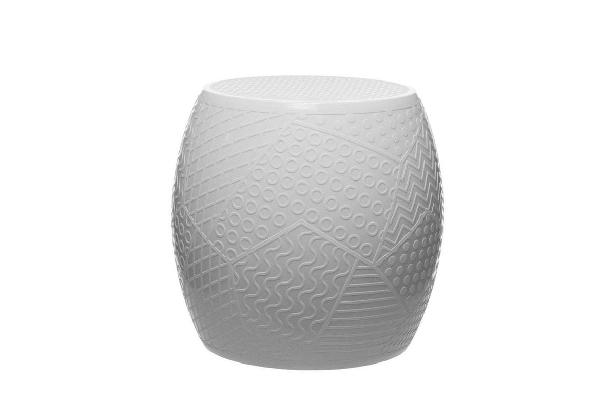A Chinese-style stool featuring a pattern in homage to Roy Lichtenstein with the dots from his paintings.