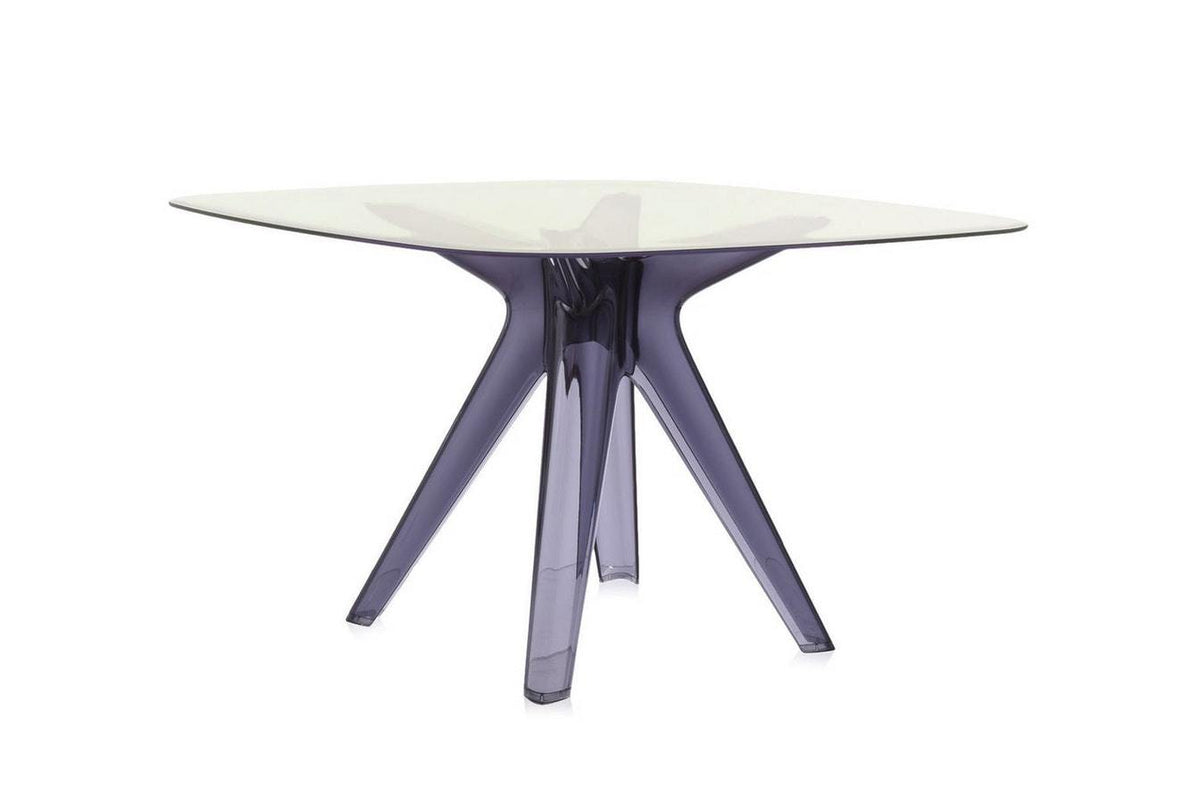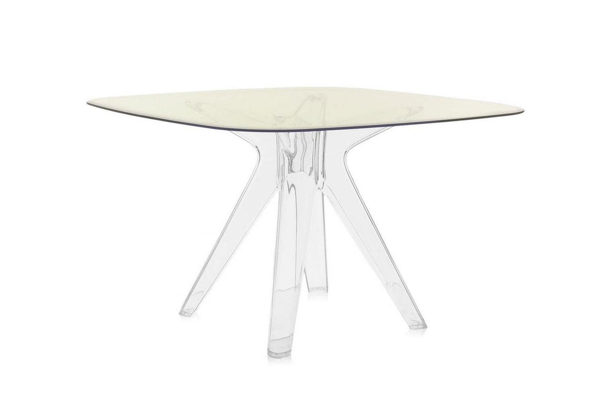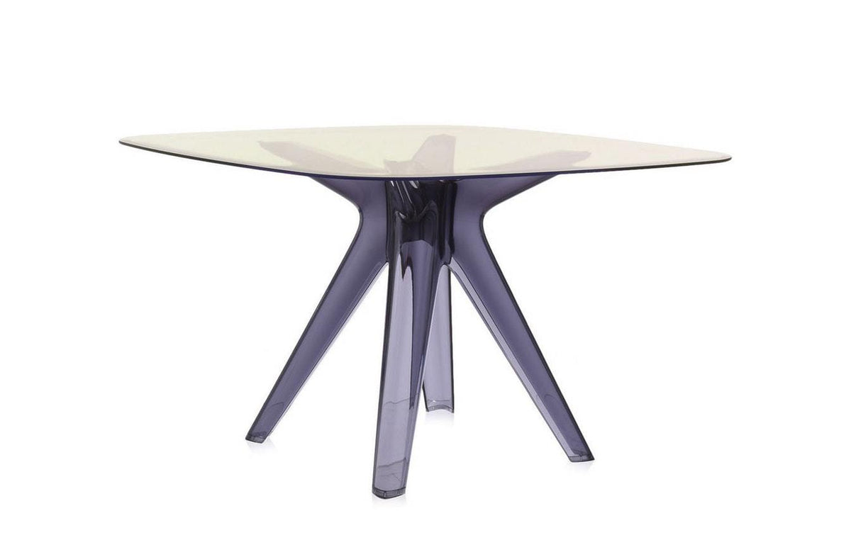 The Sir Gio table is characterised by a central leg created using a high-tech mould: the moulded plastic material conveys high performance and stability to support the glass top. The table offers the chance to combine different coloured bases and tops, for a wide range of different solutions.