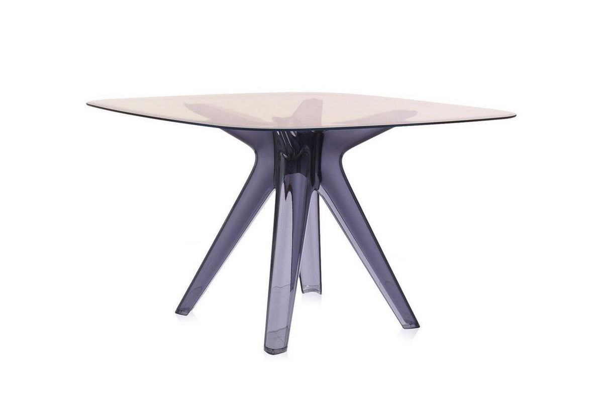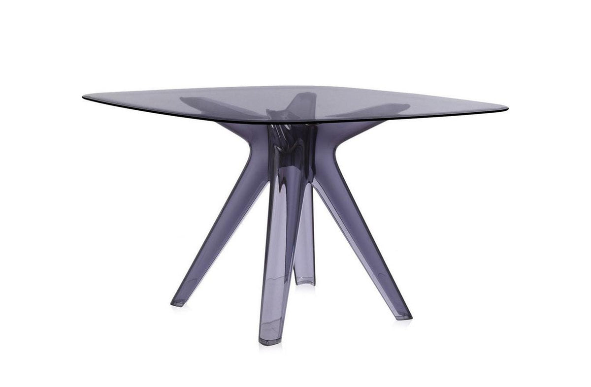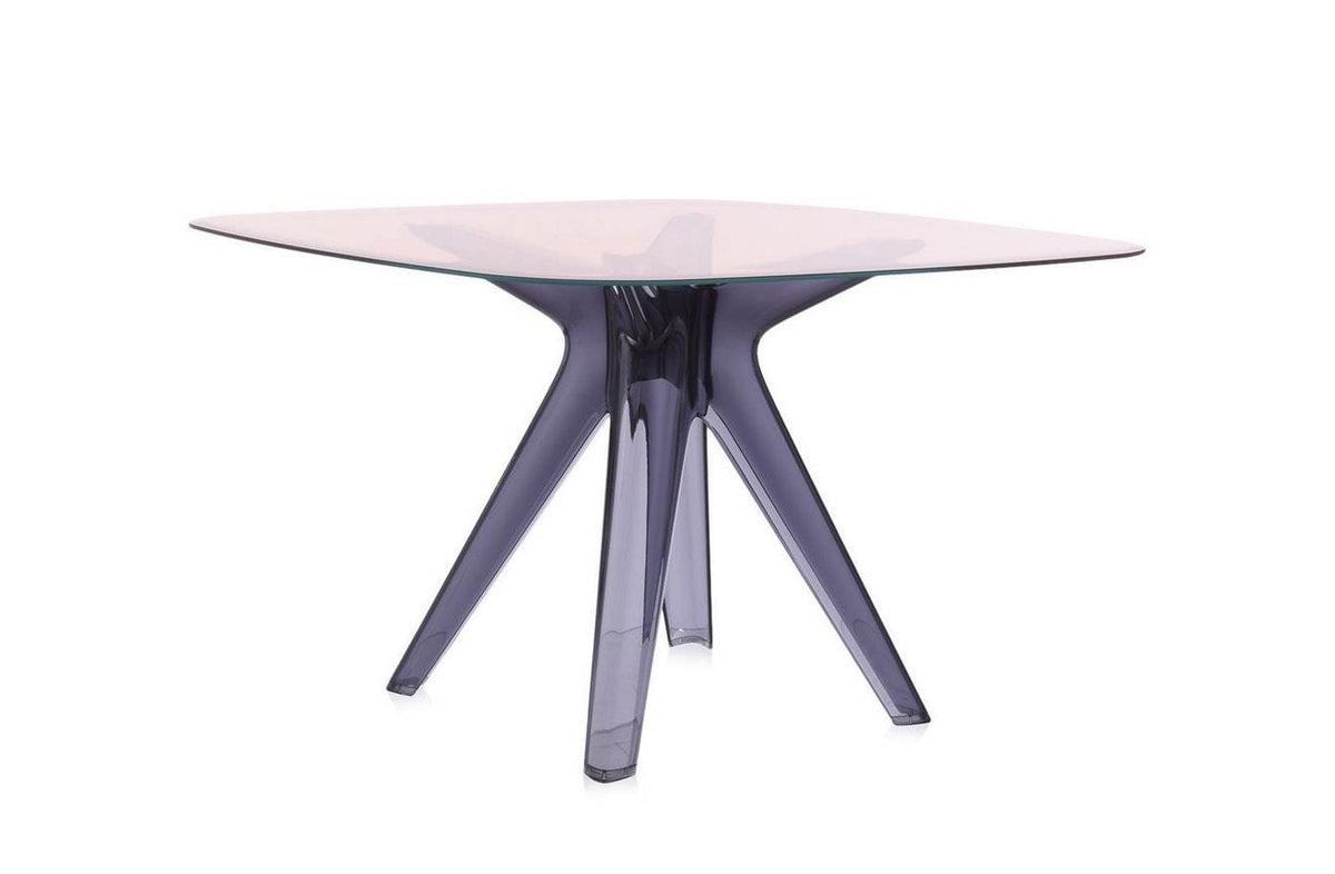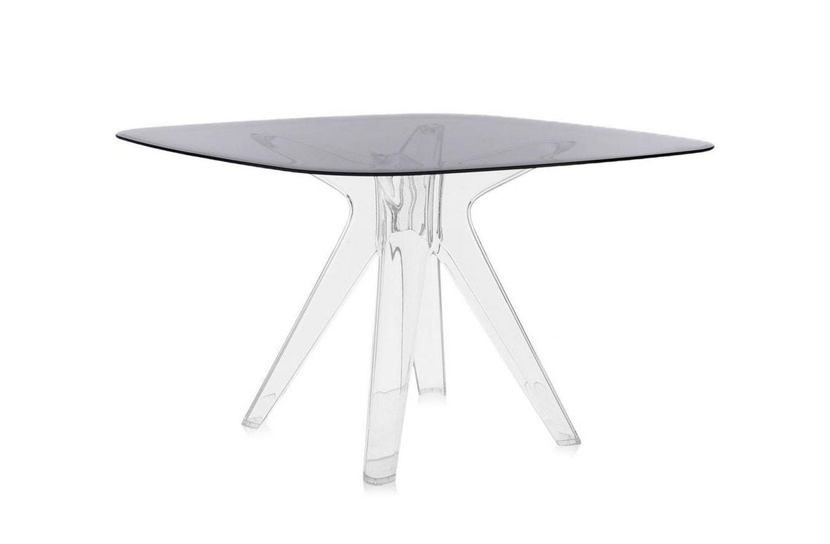 The Sir Gio table is characterised by a central leg created using a high-tech mould: the moulded plastic material conveys high performance and stability to support the glass top. The table offers the chance to combine different coloured bases and tops, for a wide range of different solutions.