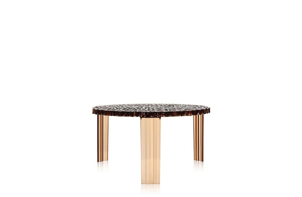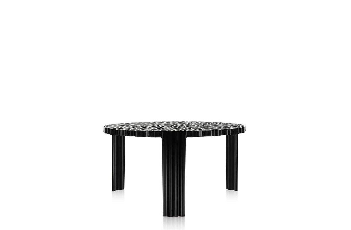 A line of tables in three heights. The surface of the T-table top alternates fullness and space to create an elegant and precious effect which is reminiscent of embroidery.