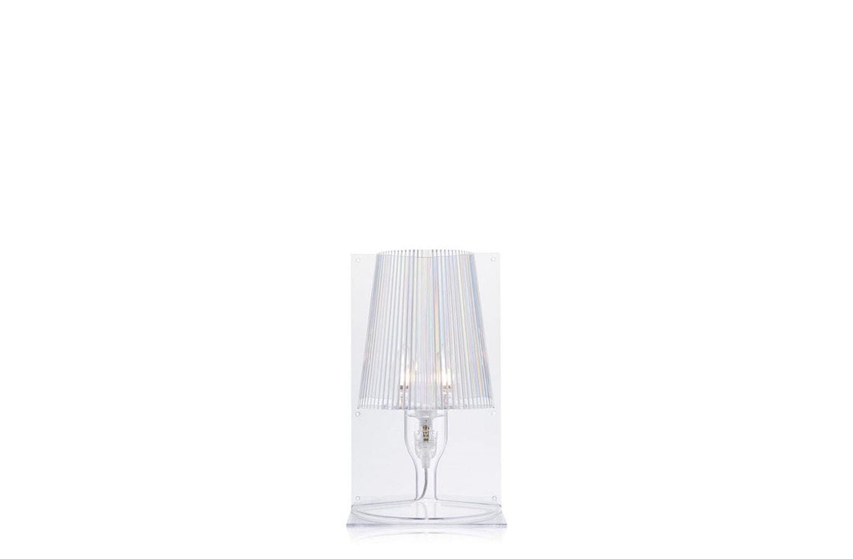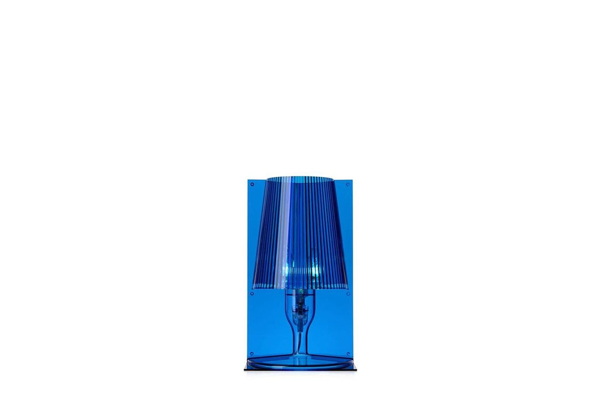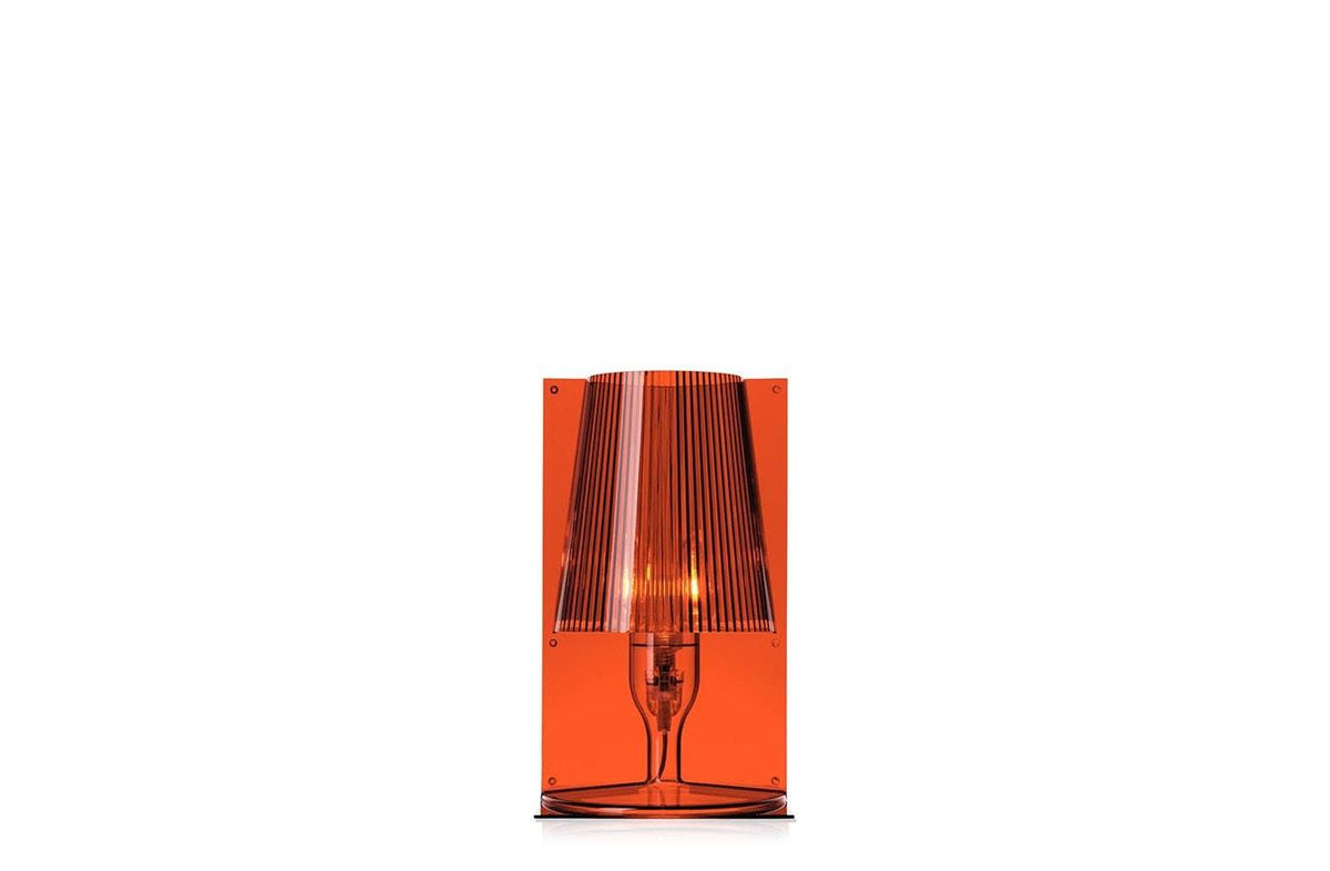 The classic icon of the bedside lamp is revisited by Kartell's technology to become an industrial product in a variety of colour shades. The shape of Take is the result of the joining of two specular parts: two flat, rectangular sheets which, from being two-dimensional at the centre, take on the shape and volume of a "semi-lamp". The internal pleating of the diffuser embellishes the object, creating, when lit, a play of reflections.